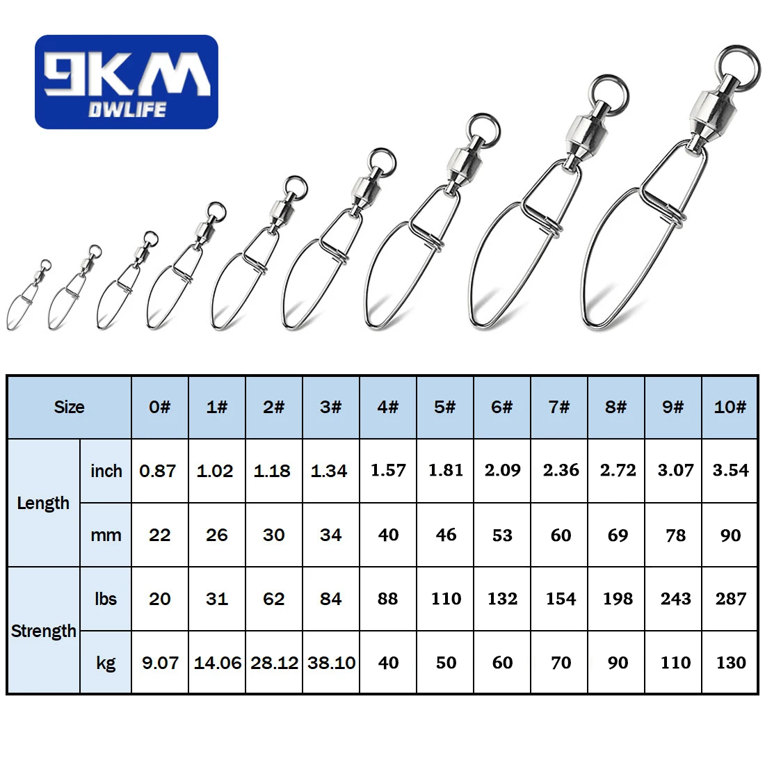 20 ~ 100 Uds giratorios rodamiento de bolas de pesca conector giratorio de pesca de acero inoxidable#0-#10 broches con cierre cruzado