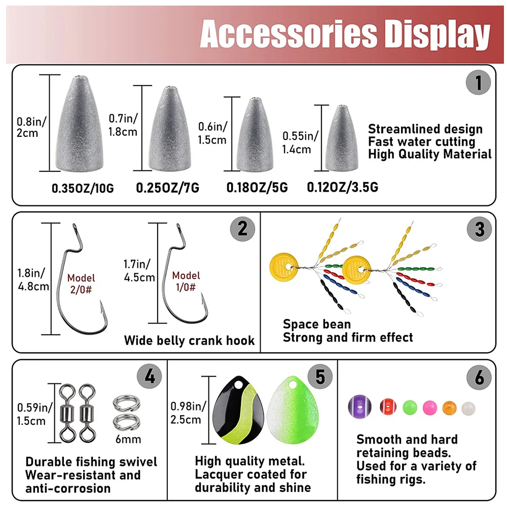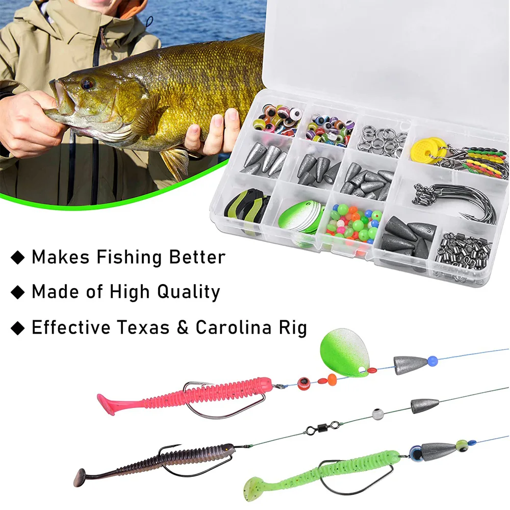 Juego de accesorios de pesca de señuelo Texas de 187 piezas que incluye Bullet, pesas de plomada, ganchos de compensación, cuchillas, Kit de aparejos de pesca de lubina