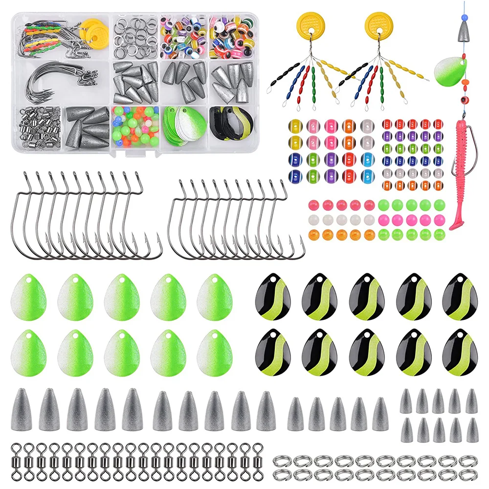 Juego de accesorios de pesca de señuelo Texas de 187 piezas que incluye Bullet, pesas de plomada, ganchos de compensación, cuchillas, Kit de aparejos de pesca de lubina
