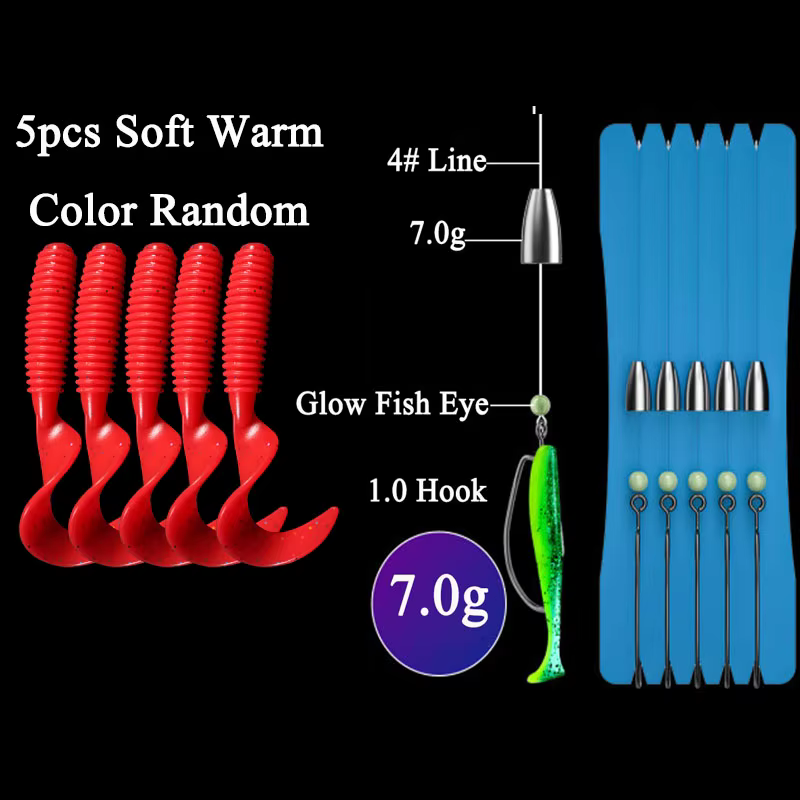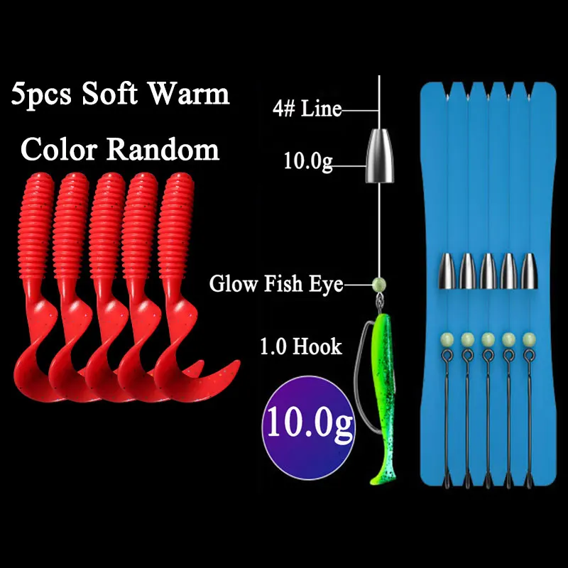Conjunto de anzuelos Texas Rig, cebo suave, Kit de aparejos de pesca, bala con lentejuelas, colgante de plomo, combinación de anzuelos, lote de 5 unidades