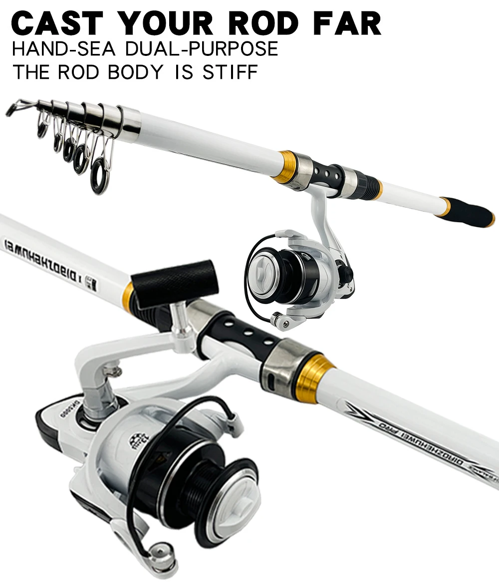 Descripción del producto: ¡Presentamos nuestra combinación de caña de pescar de alta calidad con carrete! Con el carrete giratorio Mar Agua salada Kits de agua dulce Caña de pescar profesional y carrete Combo, actualizará instantáneamente su juego de pesca.