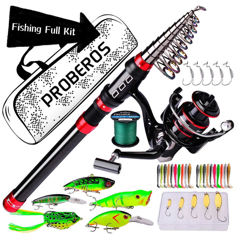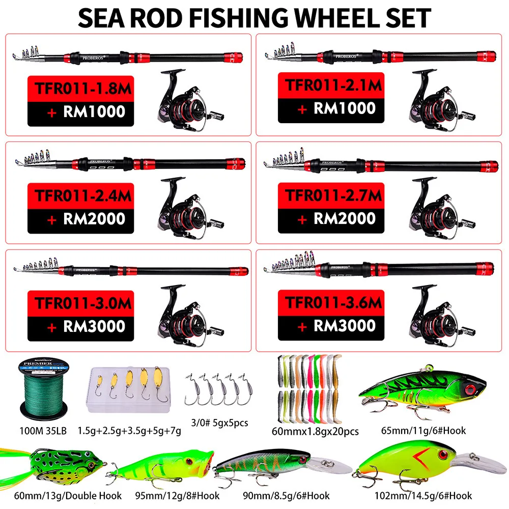 Conjunto de caña de pescar giratoria telescópica de carbono, juego de carrete de caña de pescar de tiro largo, carrete de pesca, sedal y bolsa de pesca, 1,8-3,6 m