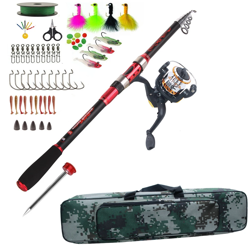 Rod legnth: 2.1m, 2.4m, 2.7m Rod material: carbon fiber Bag color: camo/green random Fishing accessories: 1*100m fishing line 1*float stopper 10*rolling swivels 10*jig hook 10*soft lure 5*lead sinker 4*lead head hook with feather 4*lead head lure fish some luminous fishing beads Feature: Comfortable EVA handle Texas rig lure set, fishing lure accessories Perfect rod combo, enjoy your outdoor fishing Note: There may be some errors of the measurement, please don't mind it. thanks