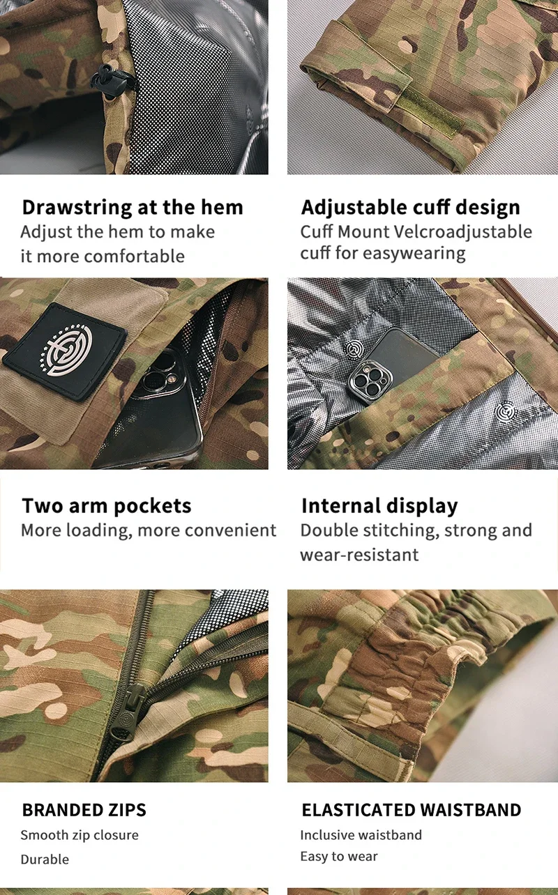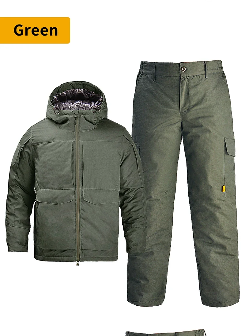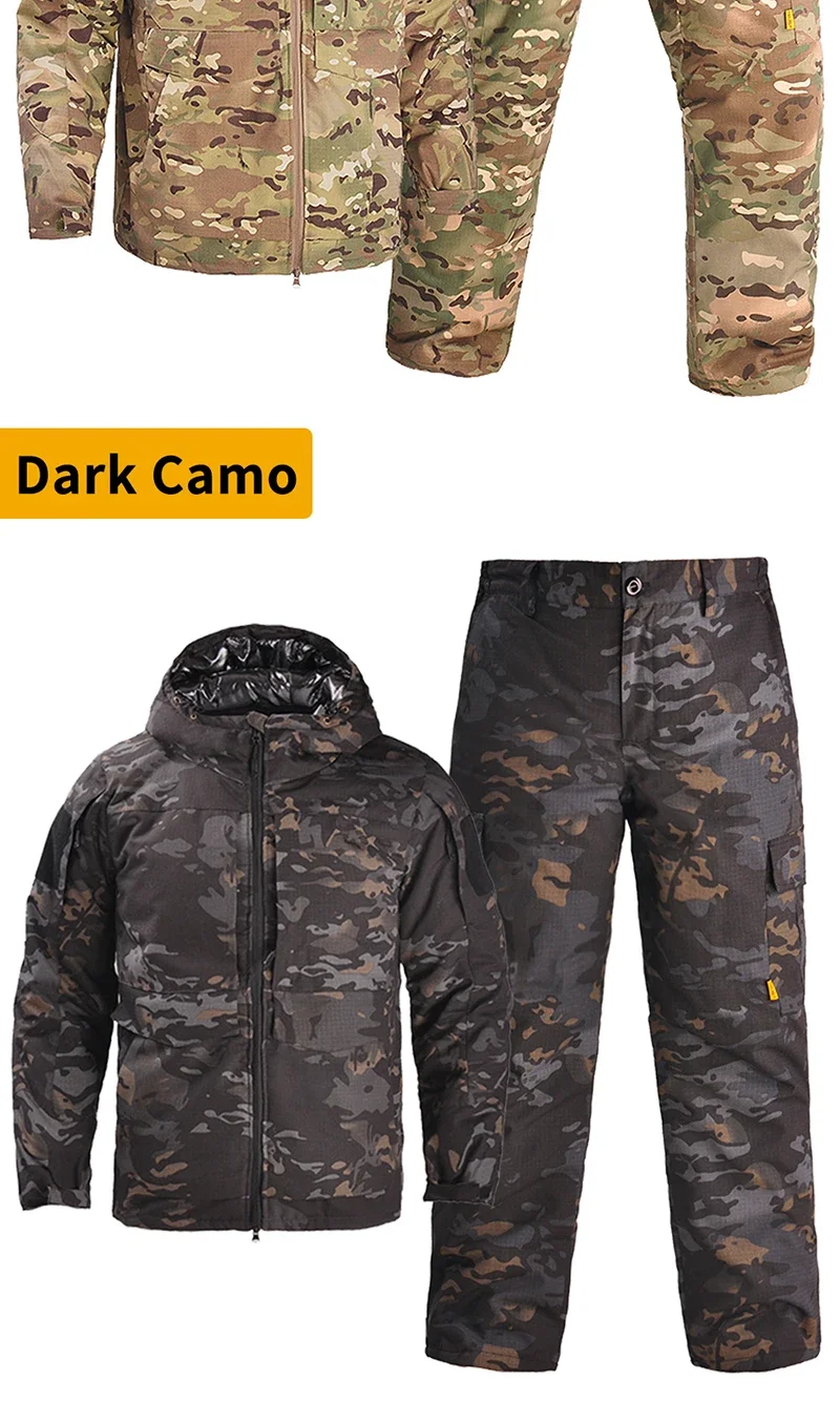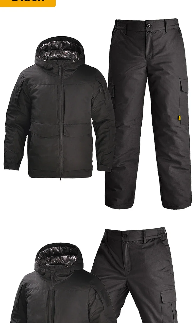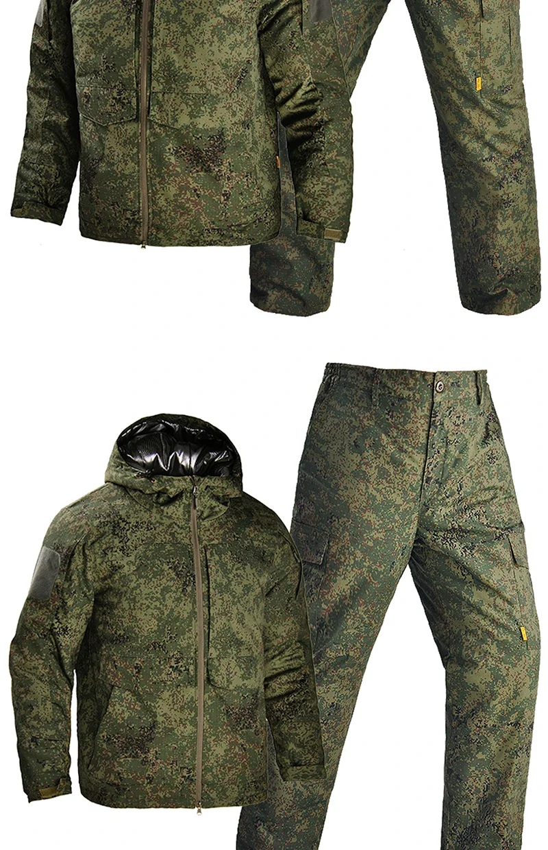 Conjunto de caza al aire libre de invierno, chaqueta gruesa y cálida con reflejo de calor, pantalones de escalada, ropa de hombre, trajes de uniforme táctico, cortavientosMaterial :65% acetato de polivinilo + 35% algodónCaracterística:Chaqueta: