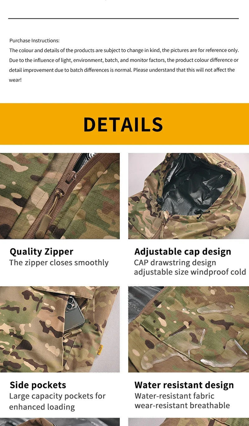 1.Capa exterior: material impermeable contra salpicaduras, sin miedo a la lluvia ligera.