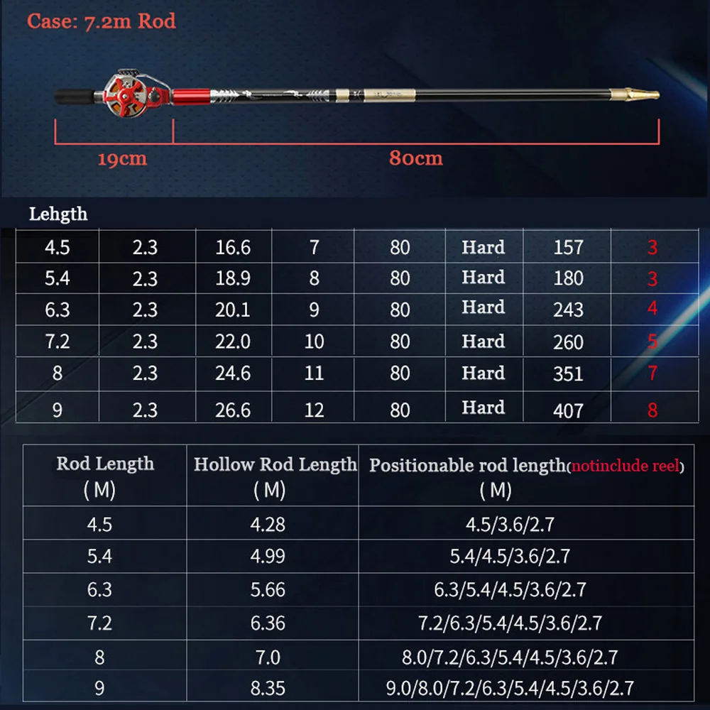 Conjunto combinado de caña de pescar y carrete, accesorio con posicionamiento múltiple, ultraligero, superduro, con 2 opciones, 4,5-9M
