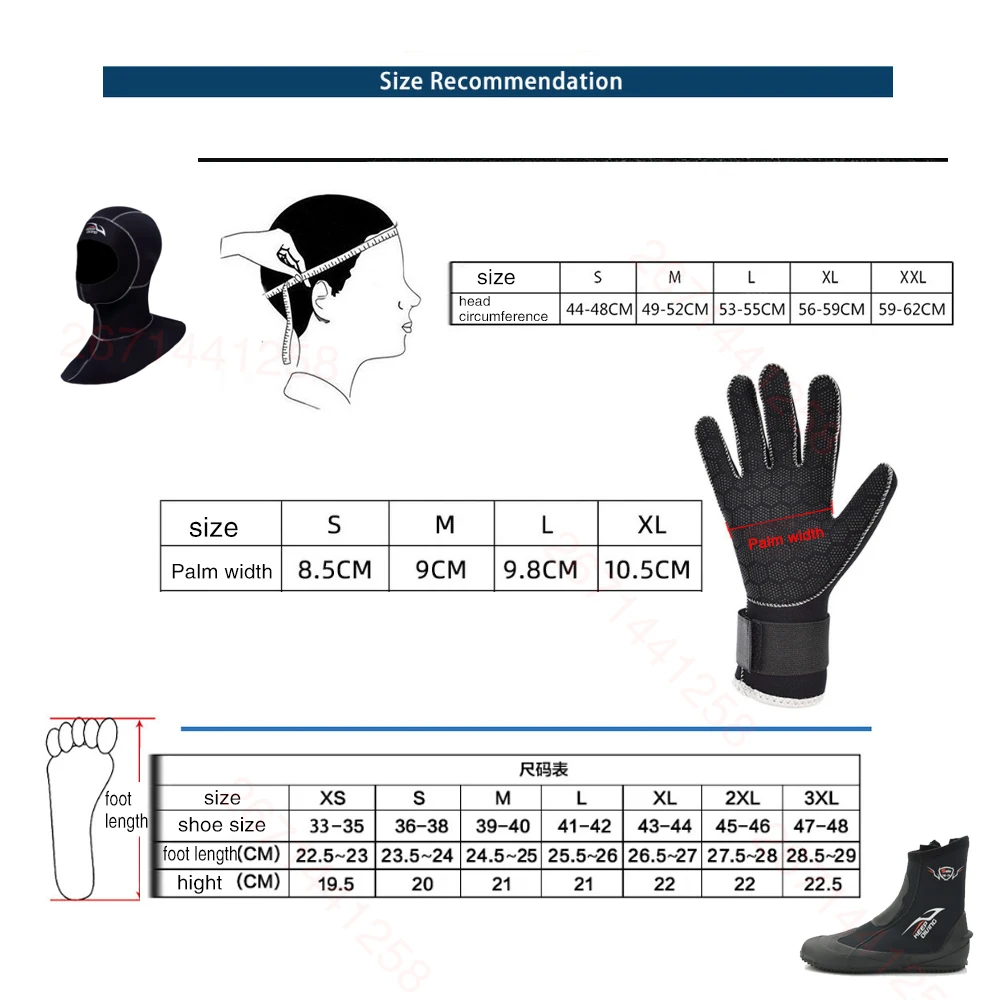 Conjunto de equipo de buceo, máscara de buceo de 3mm, guantes de buceo antideslizantes, botas de buceo de 5mm, zapatos, accesorios para deportes acuáticos, equipo de ropa de Surf