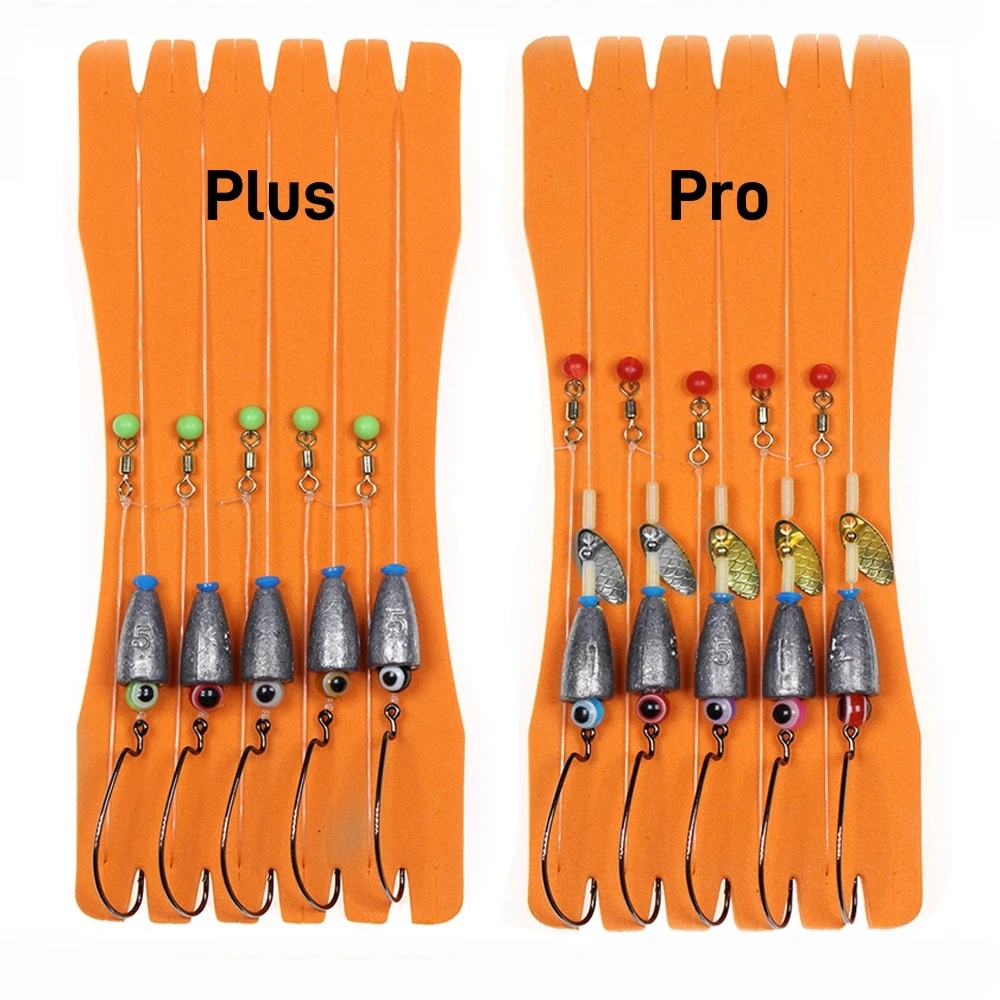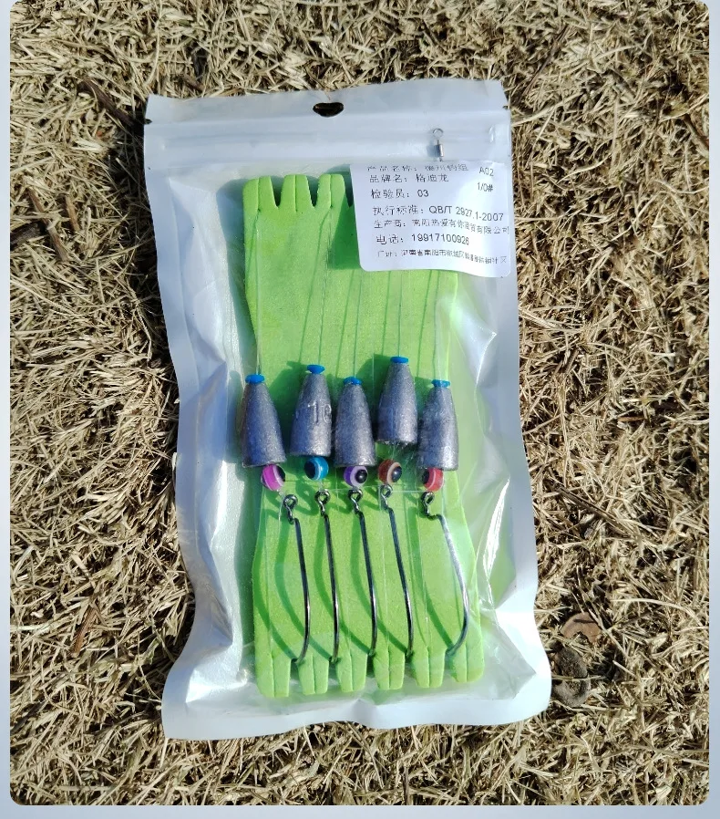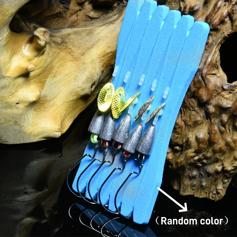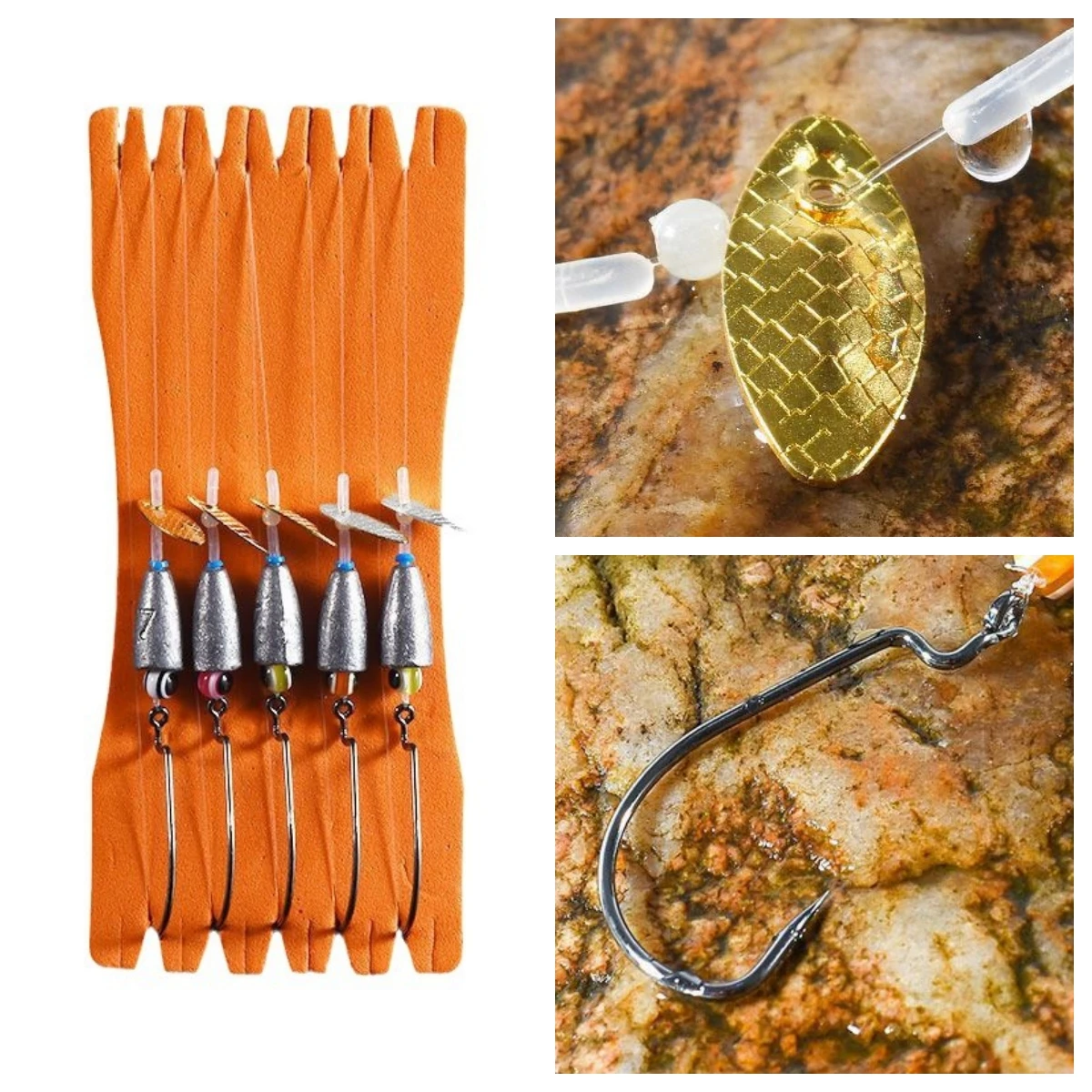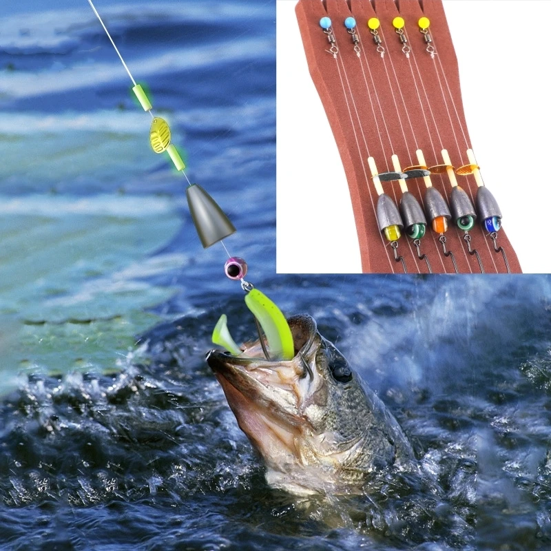 Conjunto de plataforma Texas de pescador Lazy Man: 5 anzuelos de gusano con pesas de plomo y purpurina metálica, preatados para una fácil experiencia de pesca