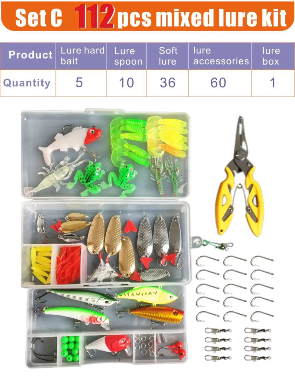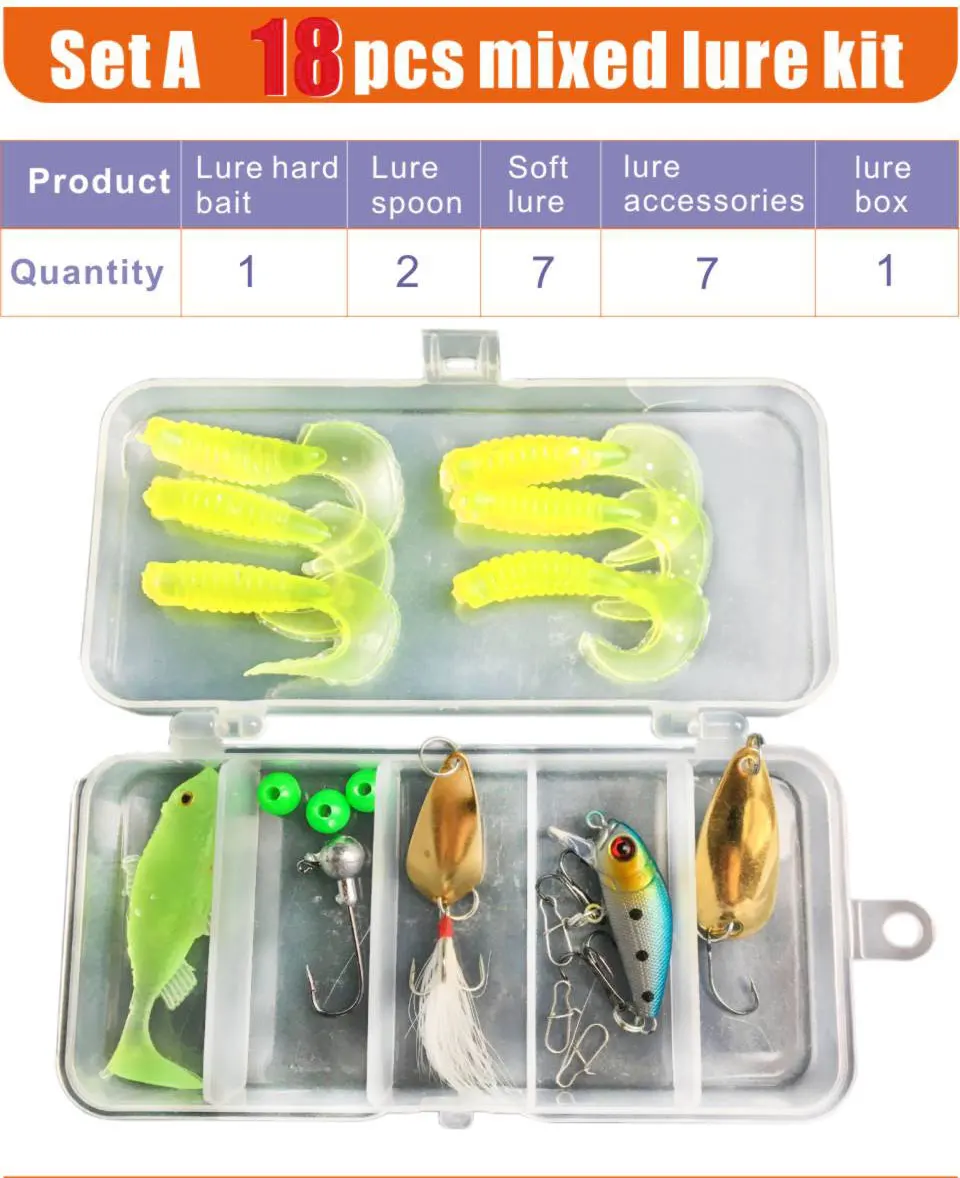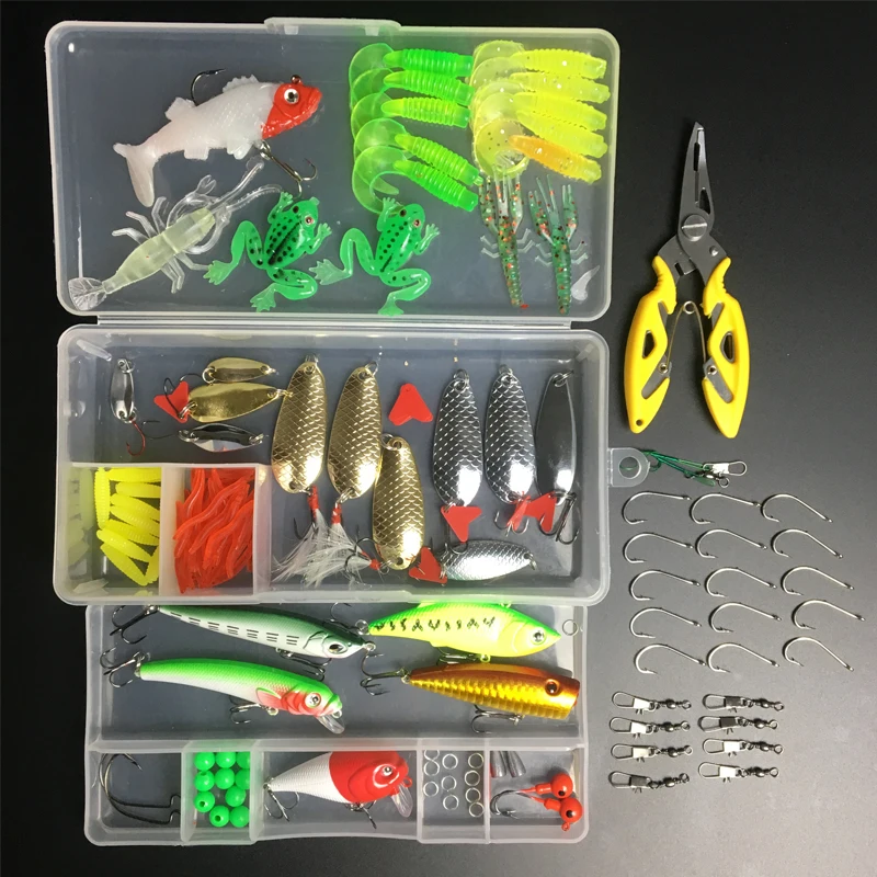 Juego de Señuelos de Pesca múltiples Wobblers de colores mezclados cebo de silicona suave Minnow Metal Jig Spoon Artificial Minnow Popper Hard Bait