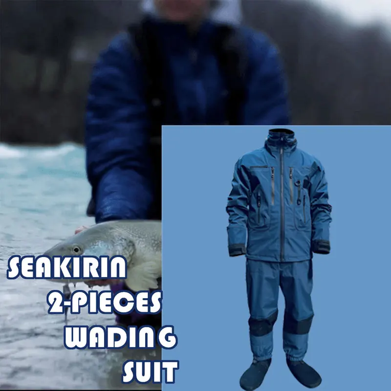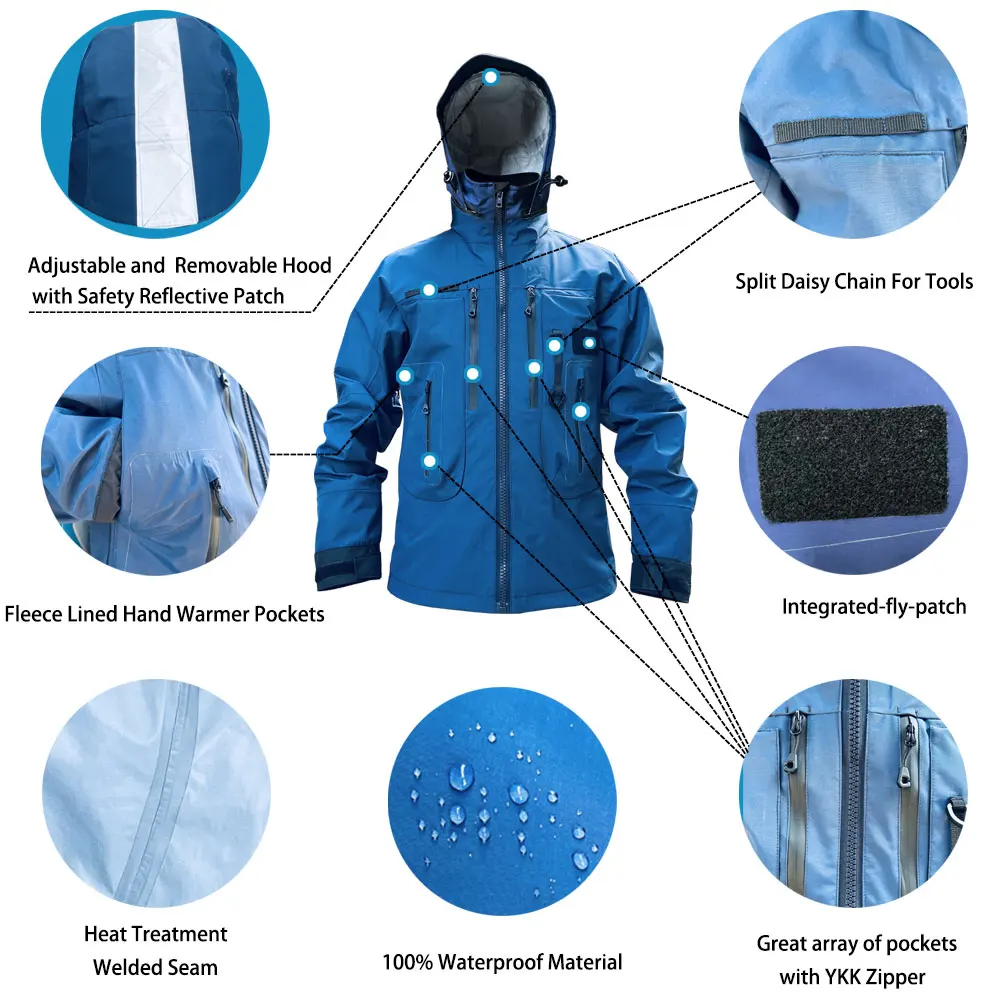 Conjunto de traje de lluvia de pesca impermeable para hombres y mujeres, cintura aislada, chaqueta de vadear con capucha, ropa de navegación de invierno, azul marino