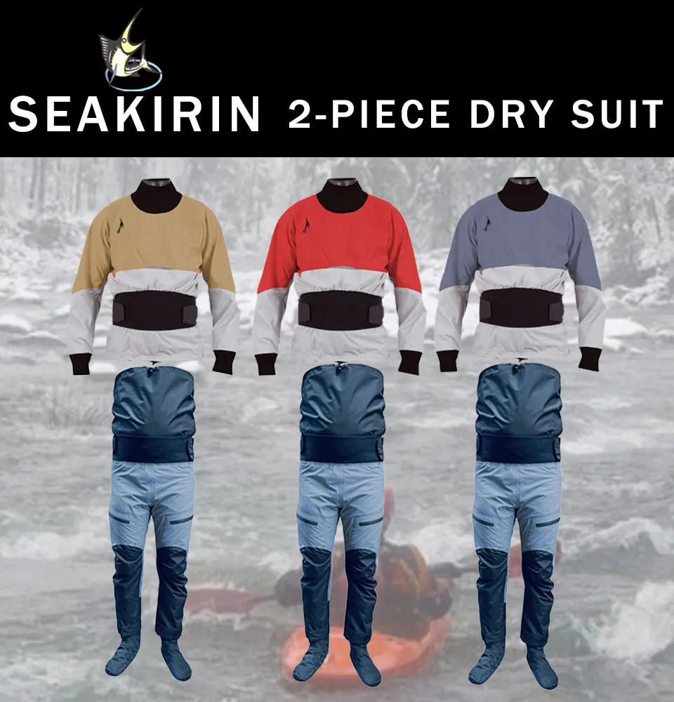 Conjunto de traje seco de Kayak para hombre y mujer, chaqueta impermeable para remar, Top, pantalones para vadear, canoa, navegación, pesca, SU