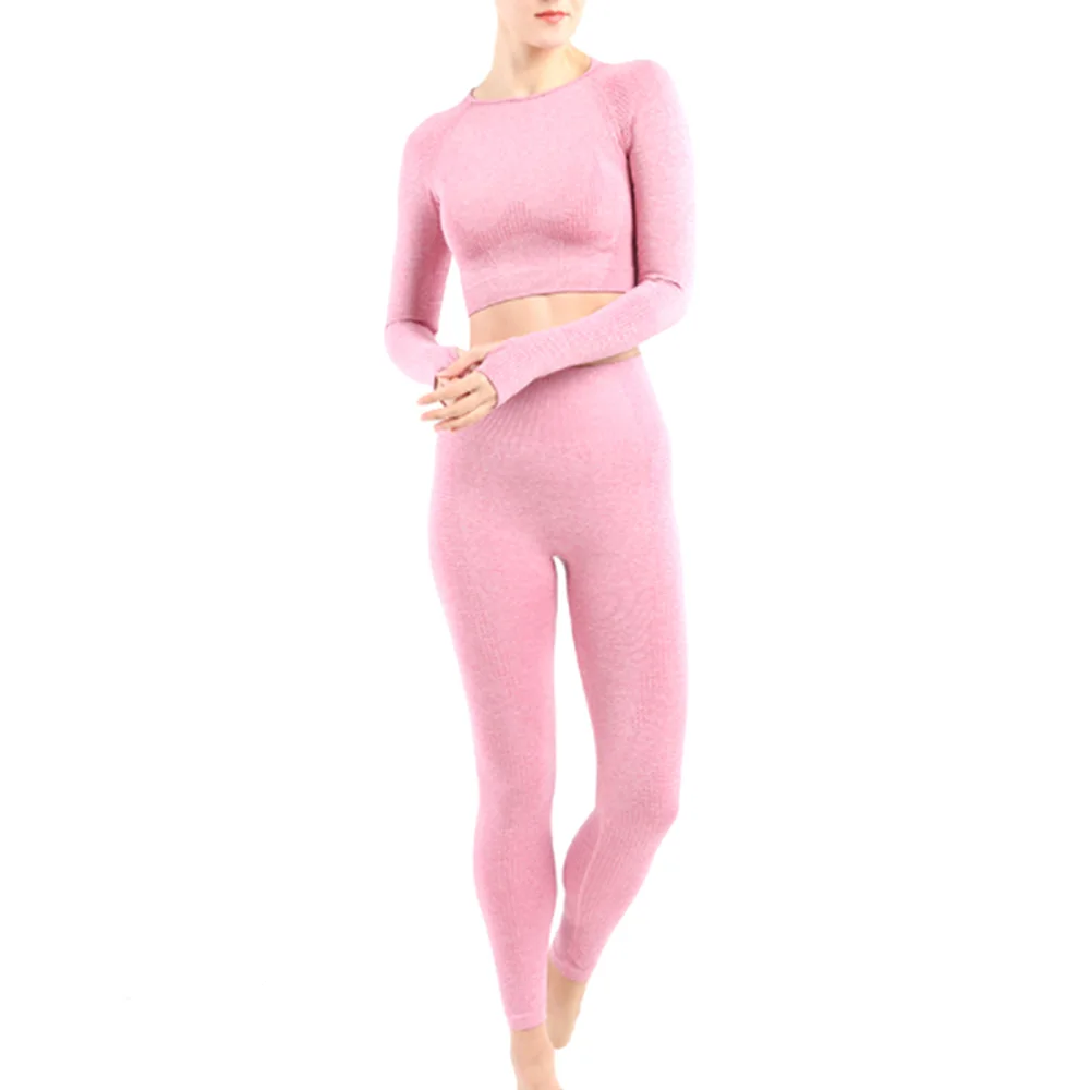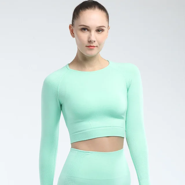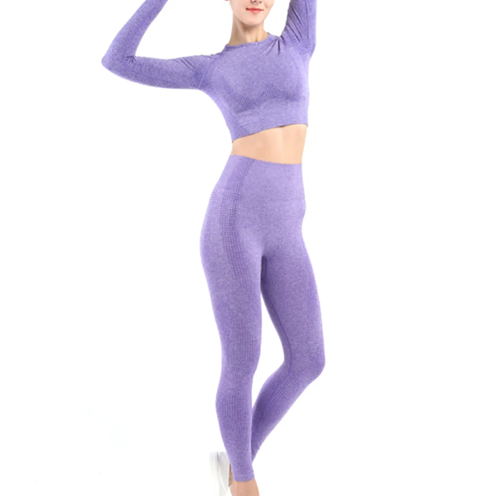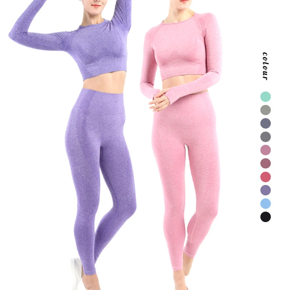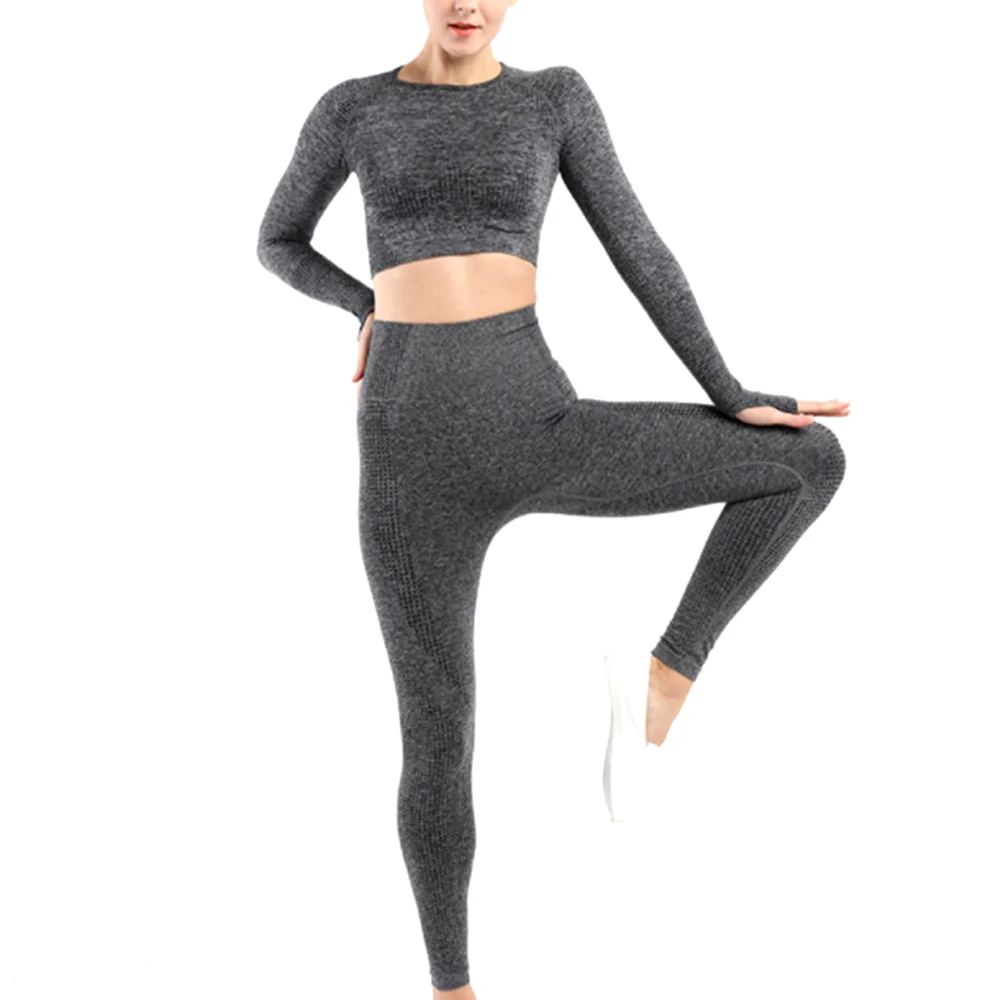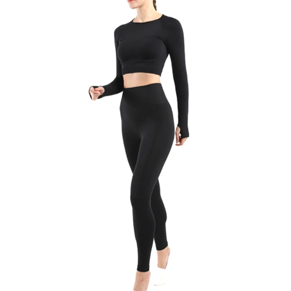 Conjunto deportivo de Yoga sin costuras para mujer, ropa de entrenamiento, Top corto de manga larga para gimnasio, Leggings de cintura alta, ropa deportiva para Fitness