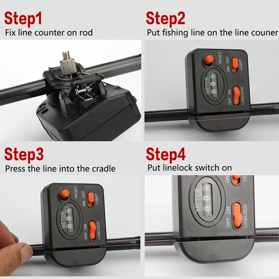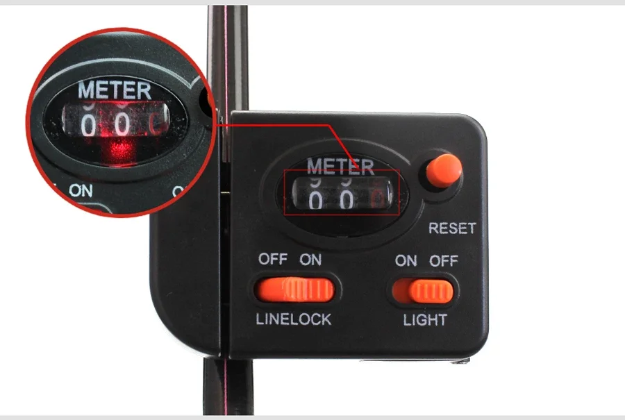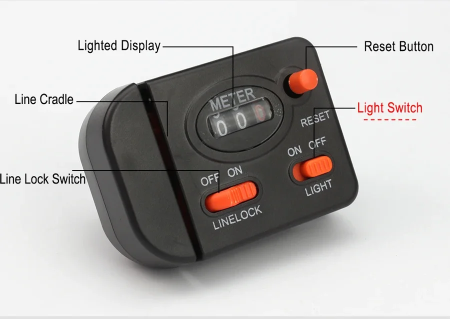 Contador de longitud de sedal de pesca, diaplay eléctrico de 0-99,9 M, buscador de profundidad de caña con Clip equipado con herramienta de aparejos de pesca inteligente ligera
