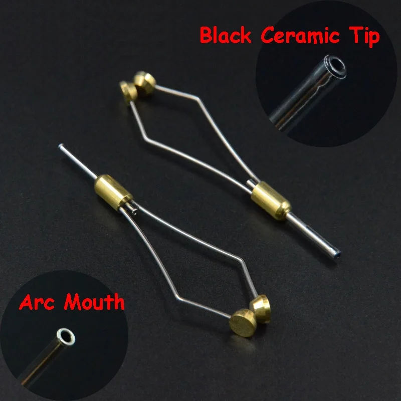 Características:Pies cónicos, 2 estilos de soportes de bobina estándar con cabeza de bala. Uno tiene boca de arco y el otro tiene punta de cerámica. Puede evitar que se rompa el hilo cuando se enrolla el gancho.