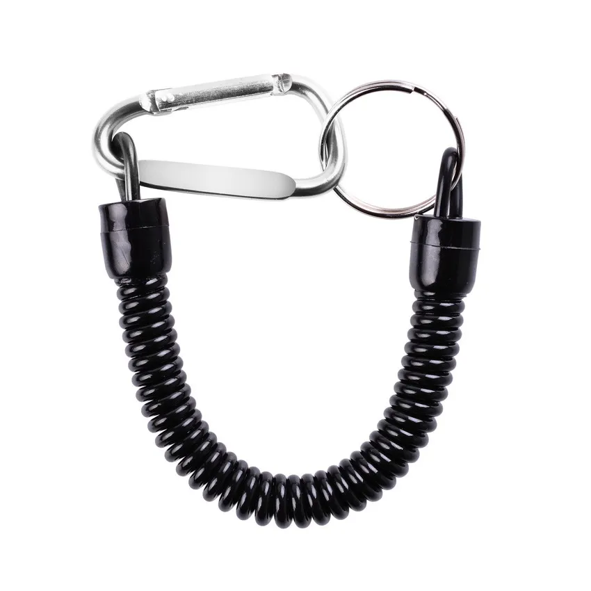 El mosquetón de aluminio en un extremo y el anillo de hierro en el otro extremo pueden sujetar su equipo a su cinturón, barco o kayak