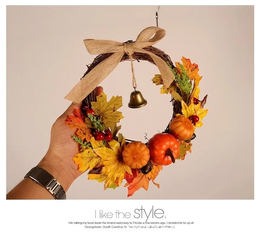 Corona de puerta de Acción de Gracias, Halloween, hoja de arce, campana de calabaza, colgante de puerta, decoración de Festival, tono de llamada de viento cálido, artesanía para el hogar