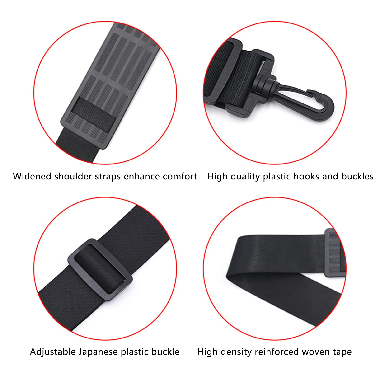 Cómodo y ajustable: el cinturón de hombro está diseñado con longitud ajustable y hombreras de goma de alta densidad ensanchadas, reduciendo la carga en los hombros y proporcionando la máxima comodidad.