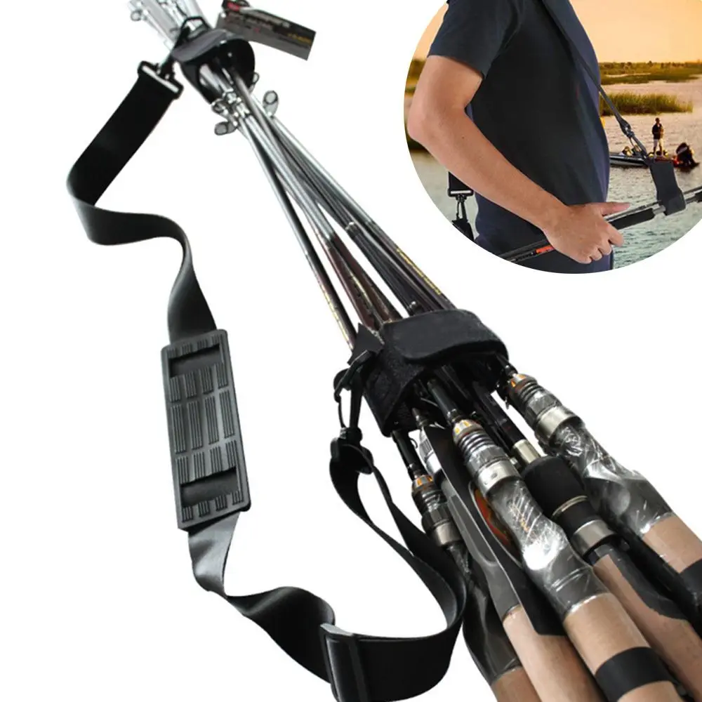 Made of EVA material, soft and high elasticity. Two straps with magic paste tape, easy to open, release and close.. The rod carry strap is adjustable, which keeps 2 or more fishing rods together. Length of the shoulder strap is adjustable, so you can carry your rods easily. It is a useful accessory to transport your rods. Material: EVA Type:Fishing Rod Holder Shoulder belt size: 120cm*3.8cm(appr.) Fasten Belt size: 27cm*3.5cm(appr.) Color: Black Fishing Rod Category:Boat/Raft Rod Quantity: 1 Pc Package includes: 1Set x Fishing Rod Holder