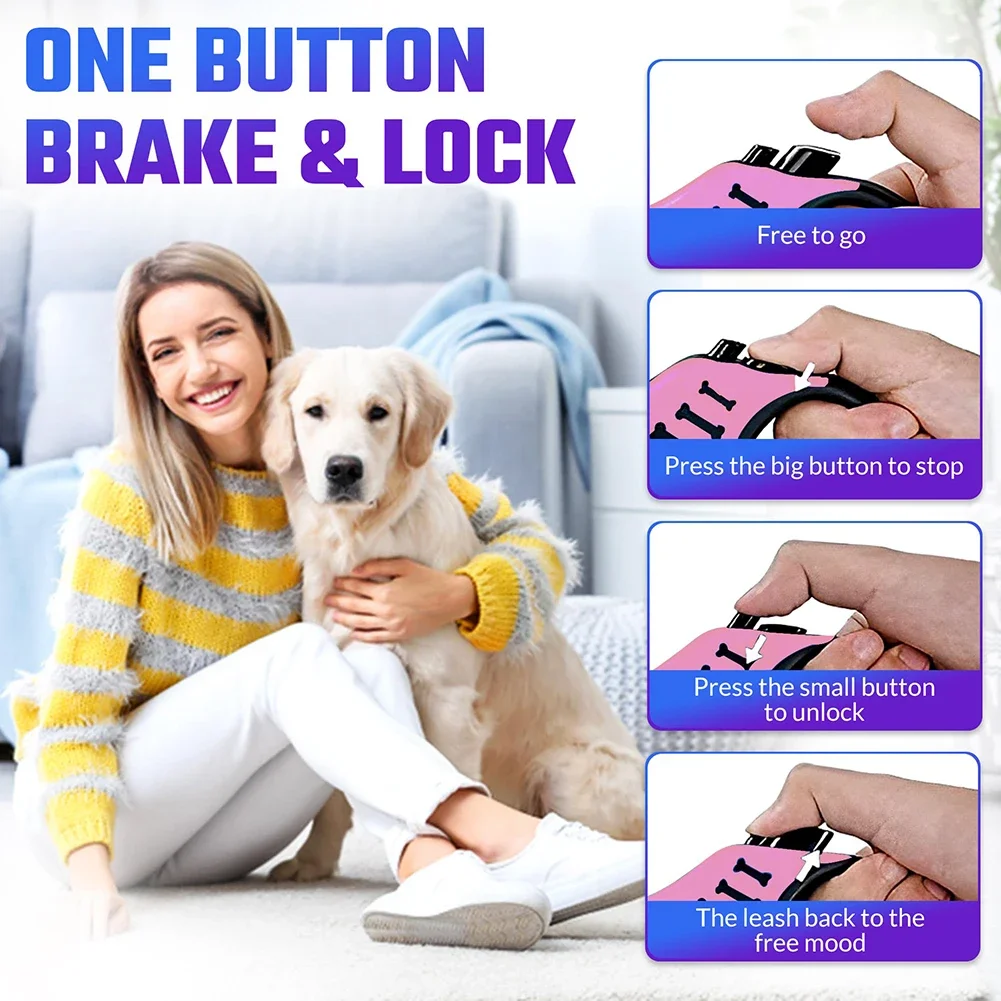 Cuerda de correa retráctil para perros grandes, medianos y pequeños.Este cinturón retráctil puede estirarse hasta 10/16 pies.Botón grande para frenar, botón pequeño para detener el frenado.El botón ergonómico antideslizante y el mango facilitan el control.Diseño de agarre cómodo en línea con el diseño de agarre cómodo, no se cansará de sostener las manos durante mucho tiempo.