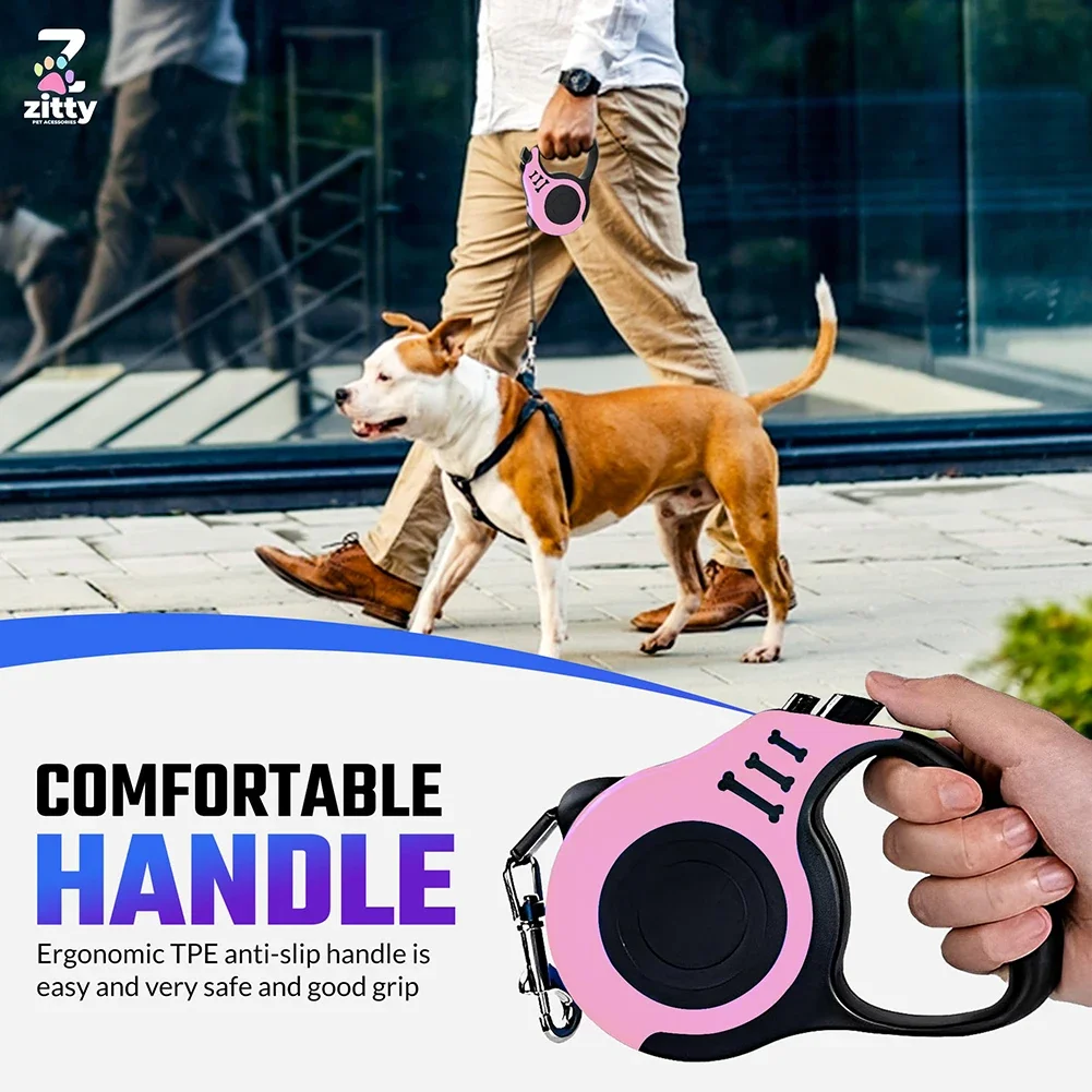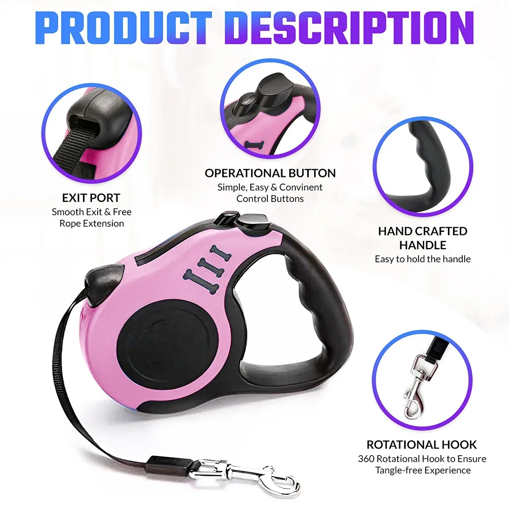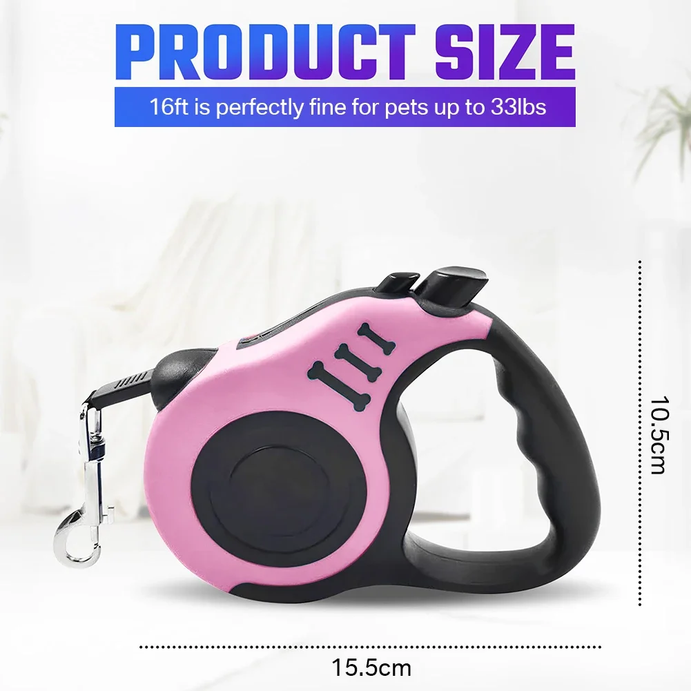 Correas retráctiles para perros que se extienden hasta 10/16 pies.La cuerda es duradera y no es fácil de romper.Diseño de agarre cómodo en línea con el diseño de agarre cómodo, no se cansará de sostener las manos durante mucho tiempo