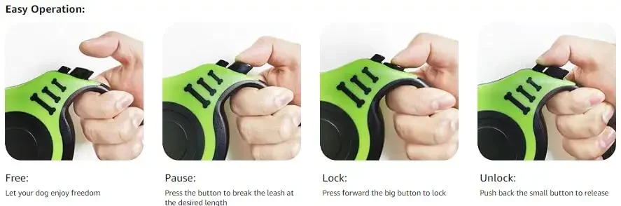 Es seguro y confiable.No necesita preocuparse de que la correa del perro le lastime la mano cuando corre salvaje, pero esto no significa que su perro pueda permanecer demasiado lejos para evitar enrollar la correa.