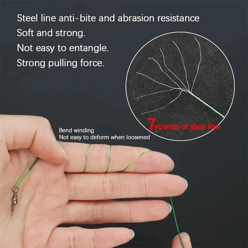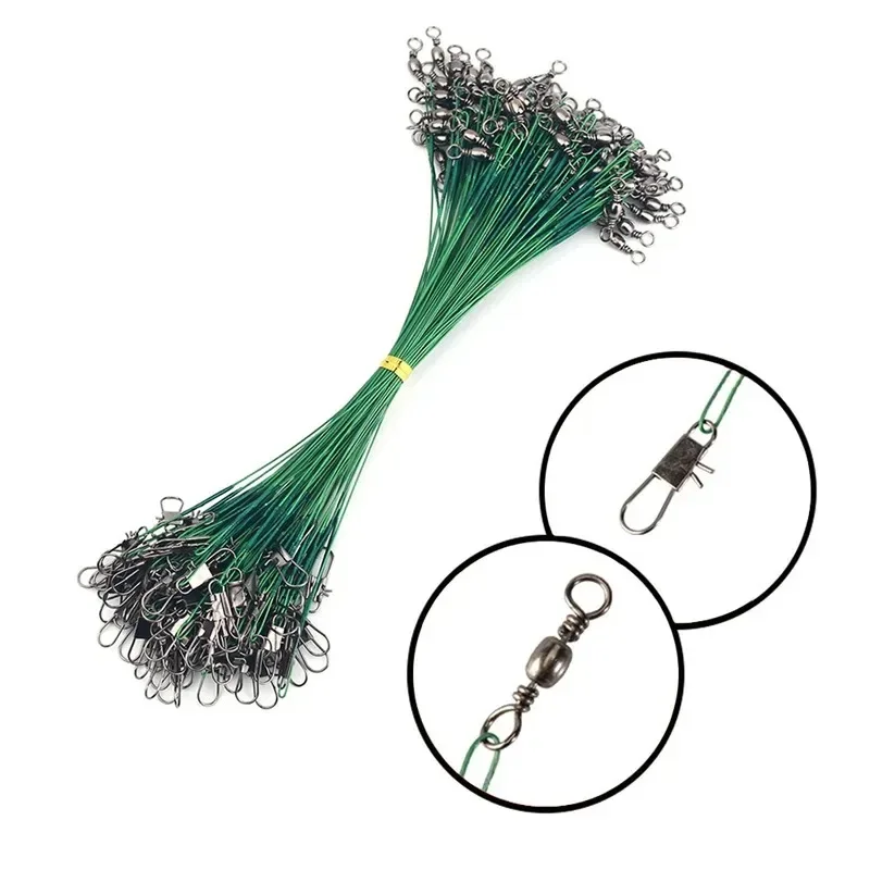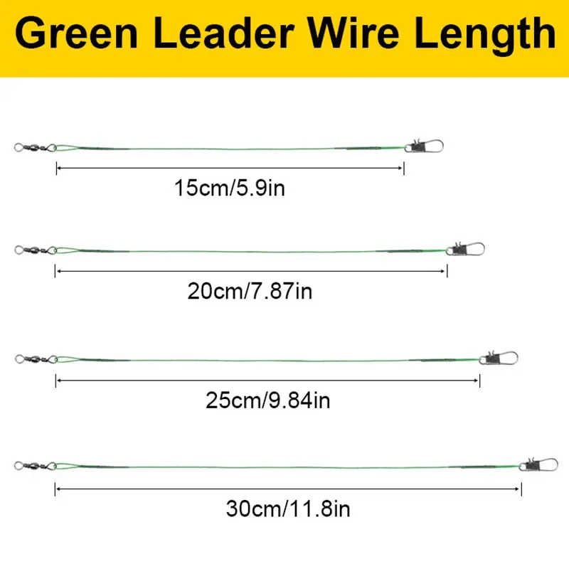 Correa de pesca líder de alambre de acero inoxidable, 20 piezas, 15/20/25cm, con línea giratoria antimordida, Leadcore para accesorios de señuelo, Lucio