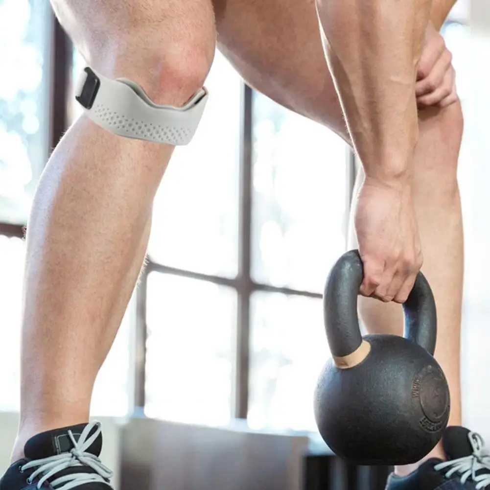 Correa de soporte para tendón rotuliano para hombres y mujeres, baloncesto, tenis, ciclismo, correr, gimnasio, Fitness, rodillera, estabilizador de alivio del dolor ajustable, rodillera de silicona