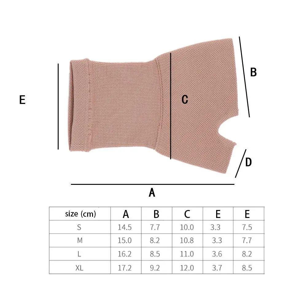 Tipo: Guantes de muñeca Color: Negro/Beige Tallas: S/M/L/XL) Material : 80% nylon + 20% spandex Paquete: 1 guante de golf Tenosinovitis (solo un guante de muñeca) Sobre el producto: 1. Soporte de primera calidad con soporte para el pulgar con un diseño dinámico para un ajuste cómodo pero flexible, adecuado para actividades diarias y deportes como golf, tenis, Baloncesto, voleibol, yoga y muchos más. 2. Ayuda a proporcionar estabilidad a las muñecas débiles y lesionadas y la parada del pulgar ayuda a aliviar el dolor asociado con la artritis, la tendinitis o el dolor en las articulaciones. La compresión multizona puede ayudar a recuperarse de lesiones en las manos, distensiones de muñeca y esguinces (RSI). 3. Hecho de tela transpirable y ligera para la máxima comodidad, control de la humedad y durabilidad, la manga sin costuras ayuda a reducir la irritación de la piel y es ideal para el uso diario. 4. El producto está disponible en 4 tamaños (S/M/L/XL) para un mejor ajuste y comodidad. Unisex adecuado para mujeres y hombres. 5. Los guantes son guantes de medio dedo para que pueda realizar las tareas diarias mientras los USA. ¡Alivia los dolores de la manera más natural posible! La mezcla de alta calidad de nailon de algodón y spandex optimiza la comodidad, permitiendo usarlo durante todo el día sin sudar. Haga recados, limpie la casa, sostenga artículos resbaladizos, envíe mensajes de texto, trabaje en su computadora, prepare la cena o incluso Pasee al perro.