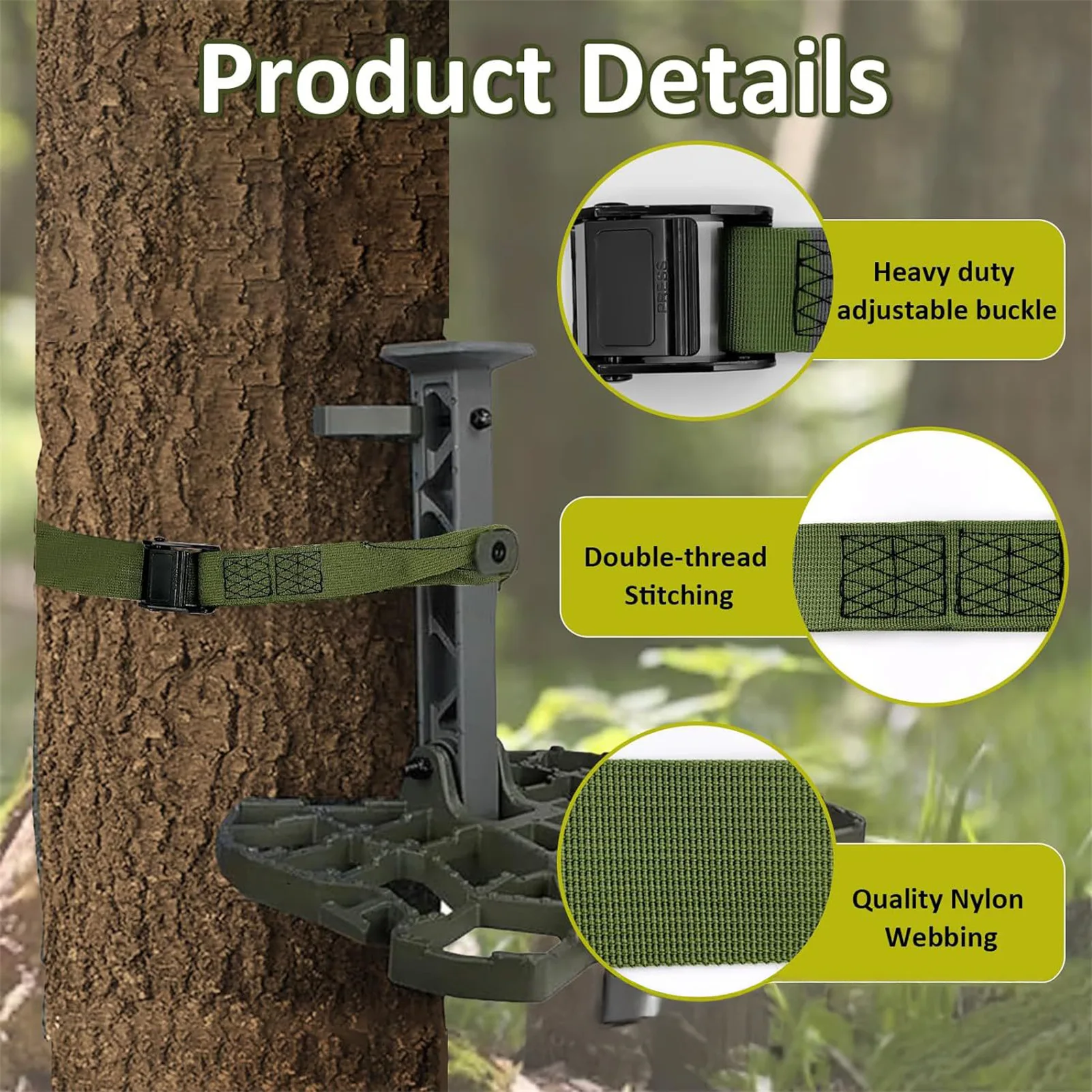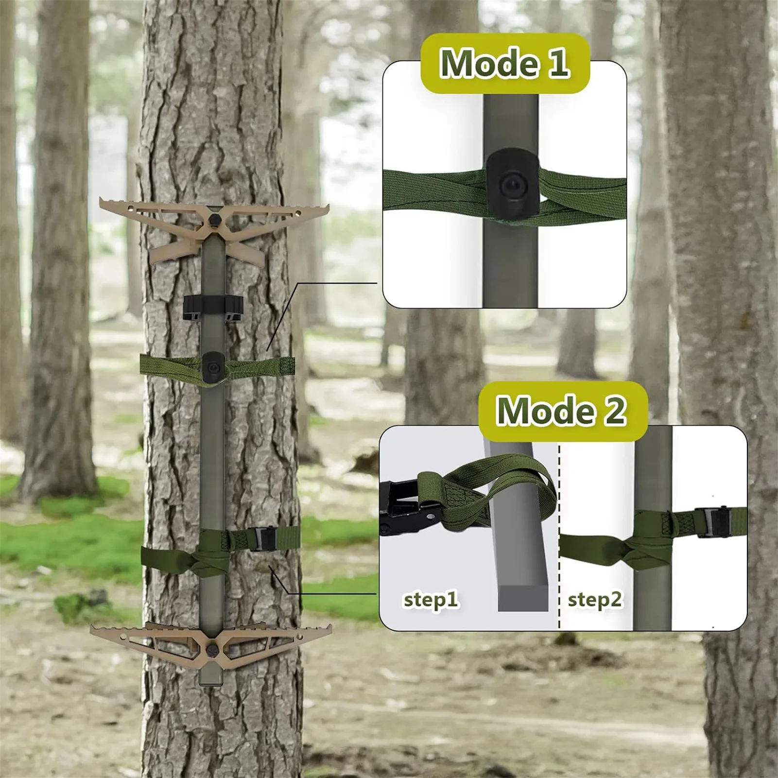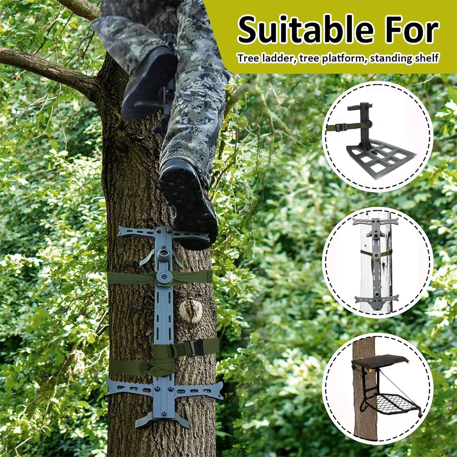 Sistema de montaje seguro: Equipado con un sistema de sujeción robusto, proporciona una instalación estable y sin tambaleos en los árboles, mejorando la seguridad durante el ascenso y la descenso.
