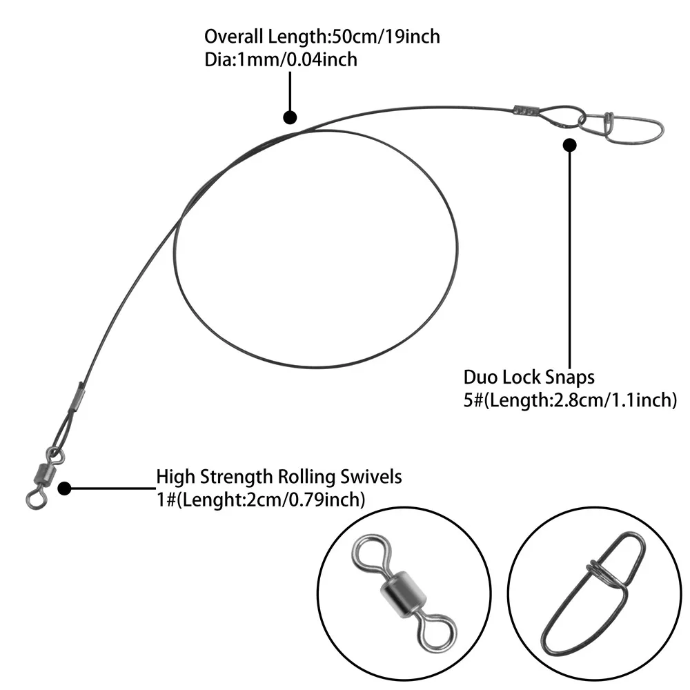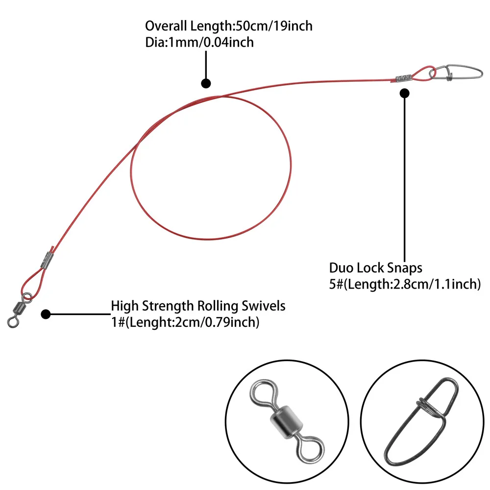 Correas de línea de pesca líder de alambre de acero de 40 piezas 50CM 150LB resistencia pesada Anti-mordedura gran juego atún Jig aparejos de pesca de carpa