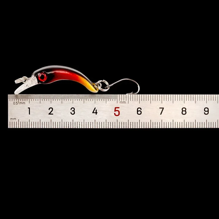 Nota: Las condiciones de luz y las diferentes pantallas pueden hacer que el color del elemento en la imagen sea un poco diferente al real.El error de medición permitido es +/- 1-3 cm.Especificaciones:Color: 8 coloresTamaño: 4cmPeso: 1,5 gMaterial: ABS de alta calidadGancho: gancho reforzado de acero con alto contenido de carbonoPeces objetivo: lubina, perca, lucioApto para aguas: todas las aguasCantidad * 1 Uds.