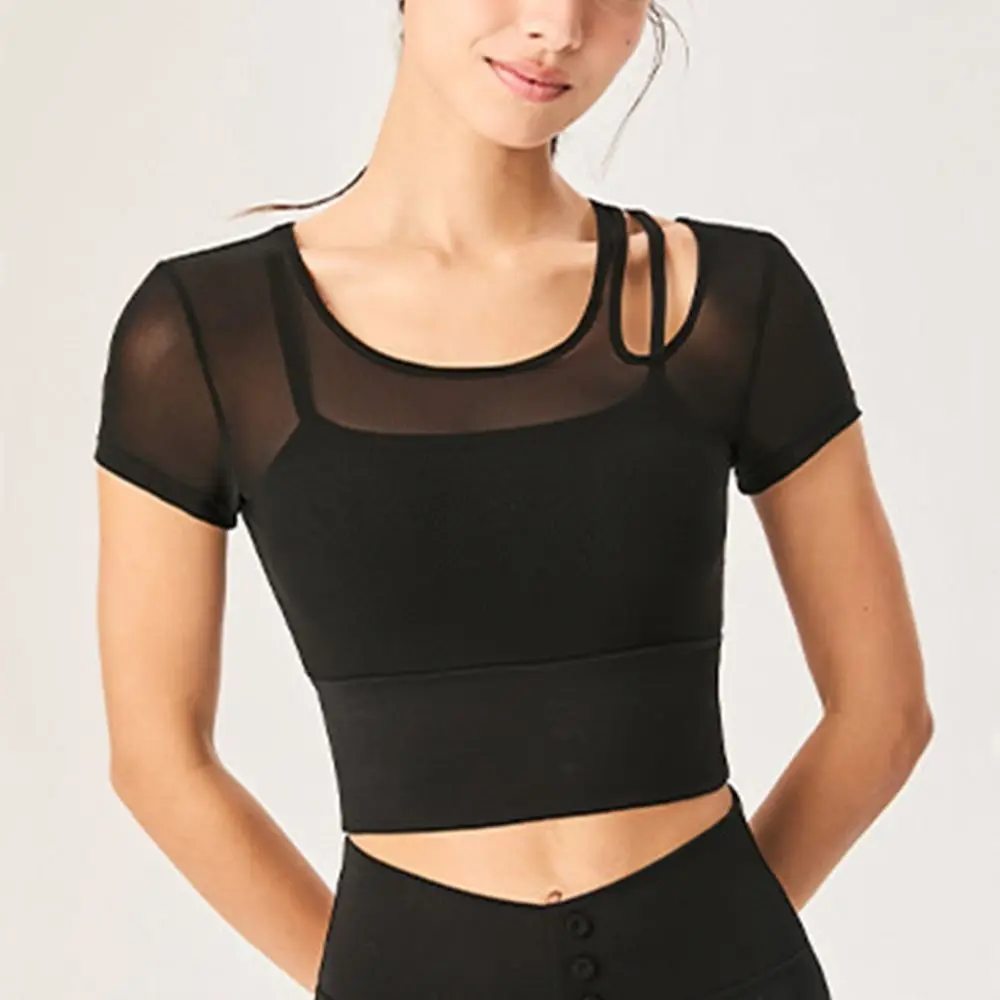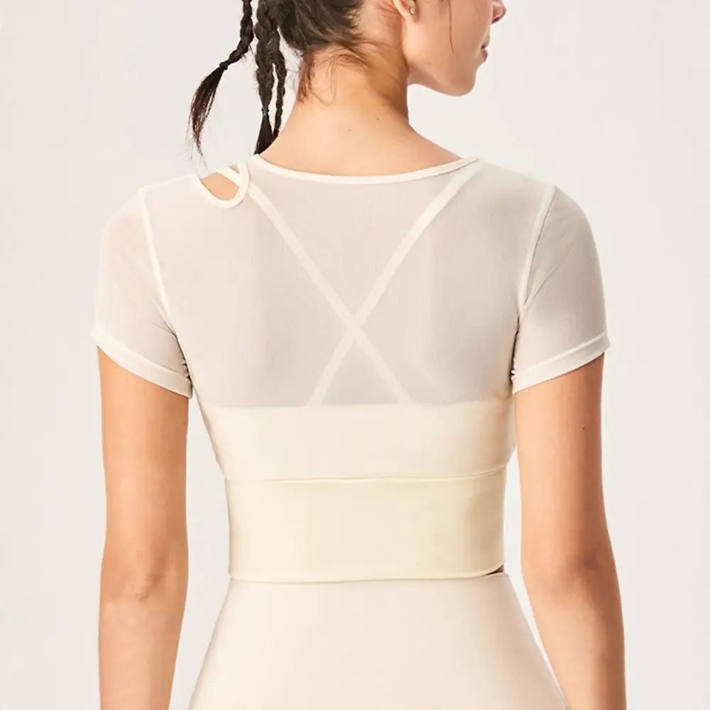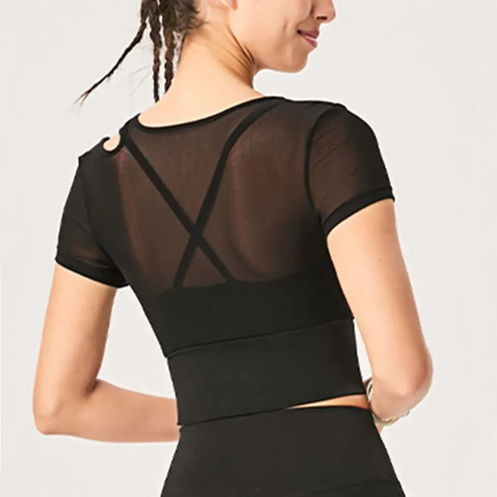 Sujetador deportivo/top de entrenamiento de manga corta, no transparente, adecuado para diversos ejercicios.