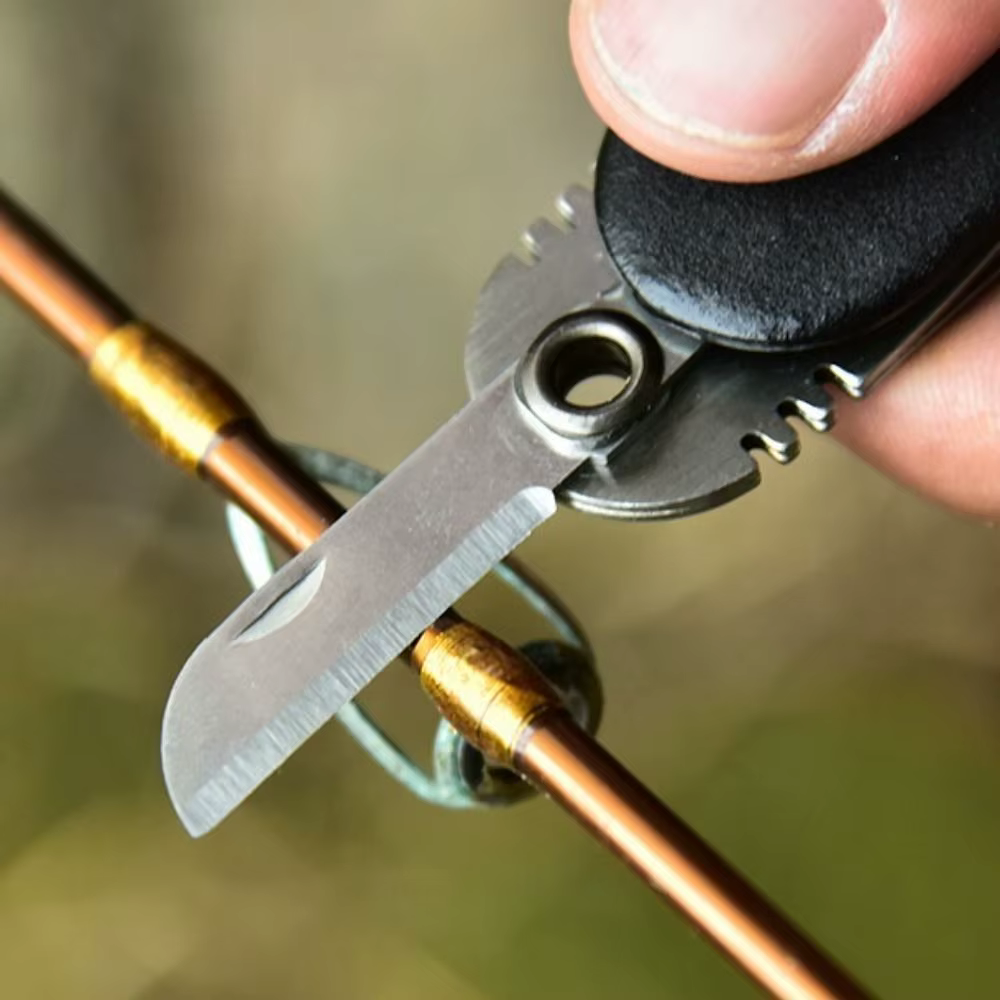 It is easy to cut a line. Have a special knife. It is easy to use even with gloves on. Perfect for cleaning up tag ends on knots and general line cutting. Includes lure tuning tool, line pick, cutting knife & lanyard. Size: Fishing Line Cutter L80 Single clamp black Material: stainless steel 420 Gross net weight: 80g Length: 63mm(2.48in) Handle: stainless steel Stainless steel thickness 1.2mm(0.05in) Package includes: 1 * Fishing Line Cutter