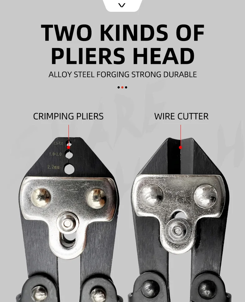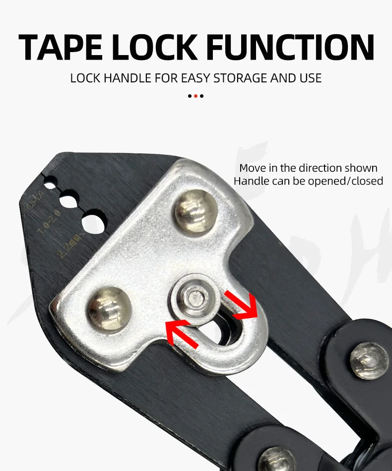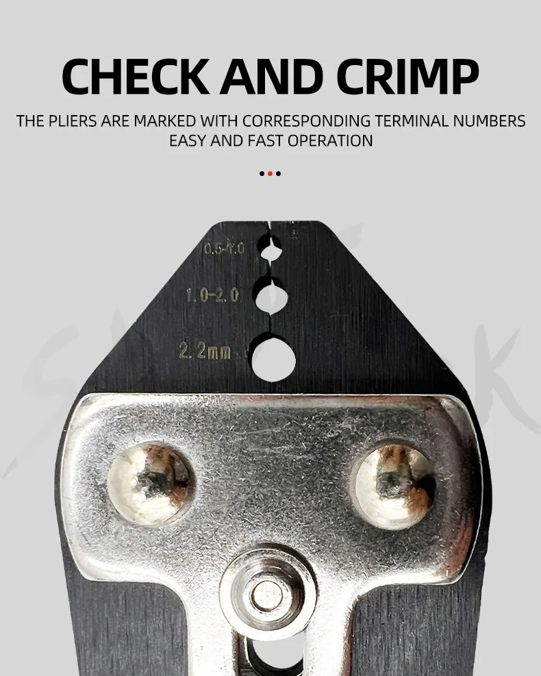 【RESISTENCIA 】:【AMPLIAMENTE APLICACIÓN】:3 posiciones de prensado: 0,5-1,0mm, 1,0-2,0mm, 2,2mm. Puede engarzar fácilmente la manga de cobre/aluminio.