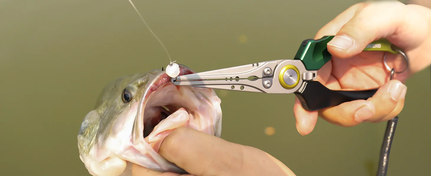 Cortador de pesca, alicates multifuncionales para señuelos de aleación de aluminio, controlador de peces, anzuelo con abrazadera, recorte de peces, soporte para caña de pescar