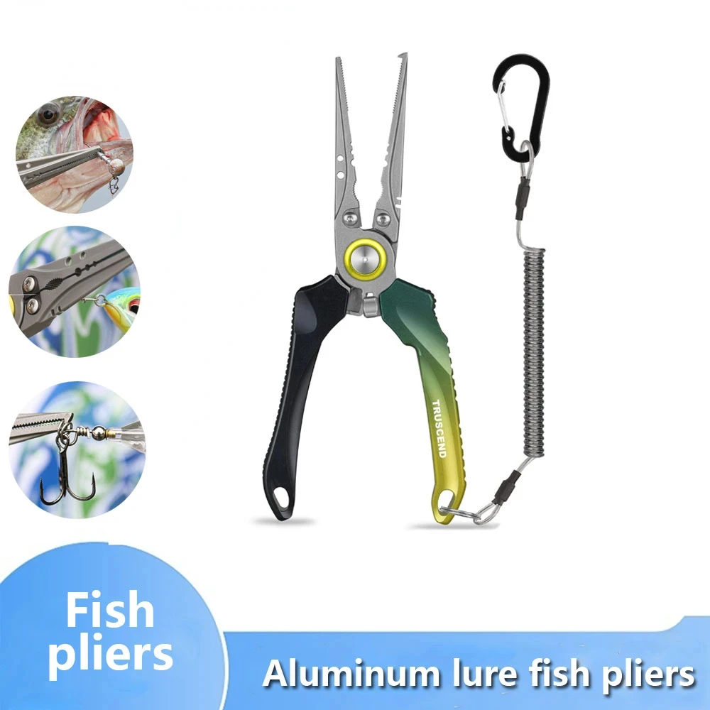 Cortador de pesca, alicates de señuelo de aleación de aluminio multifuncional, controlador de pescado, abrazadera anzuelo, recorte de pescado, soporte de caña de pescar