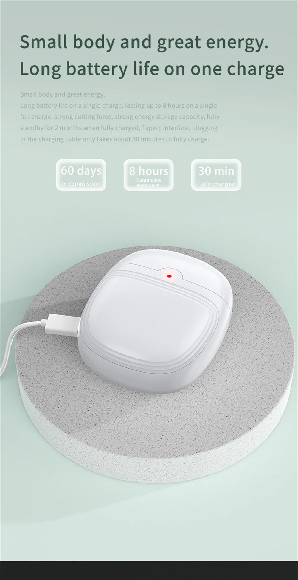 1. Este cortaúñas eléctrico puede recortar y pulir las uñas a la vez. La velocidad del par se puede ajustar en dos marchas, y las esquinas también se pueden cortar limpiamente.
