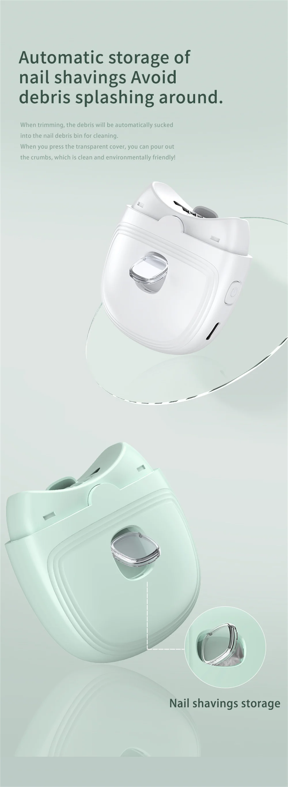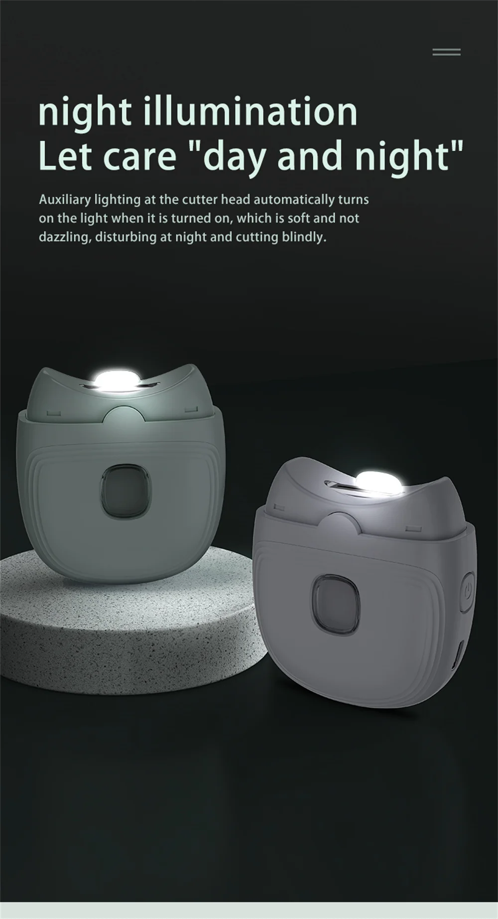Cortaúñas eléctrico USB con luz LED, amoladora automática de 2 velocidades para uñas, miniherramientas de manicura para bebés y adultos
