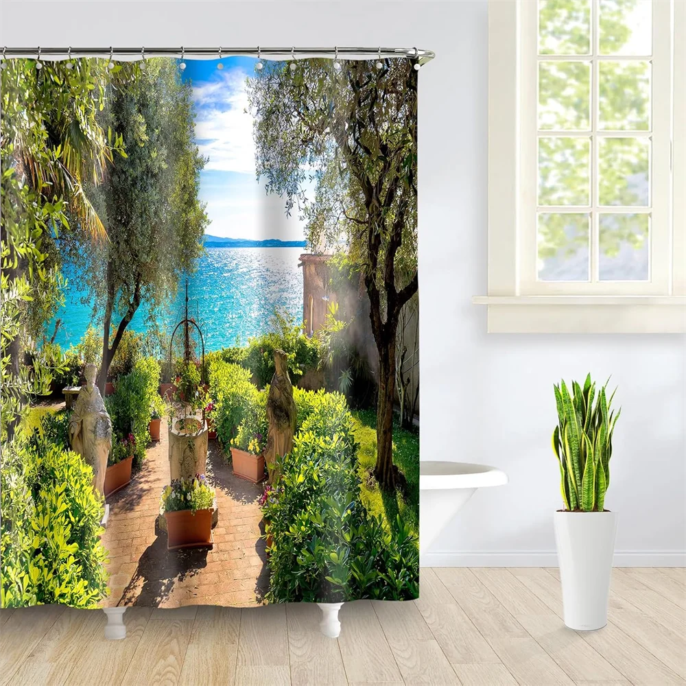 Impresión: cortinas de ducha escénicas para jardín y ducha, juego de cortinas de baño de tela súper suave y de secado rápido con ganchos, la escena de jardín de cortina de ducha al aire libre adopta tecnología de impresión digital avanzada, Y el patrón es claro y no se desvanece. Este es un accesorio de baño de bajo costo que puede cambiar la imagen de su baño y brindarle un momento de ducha relajante.