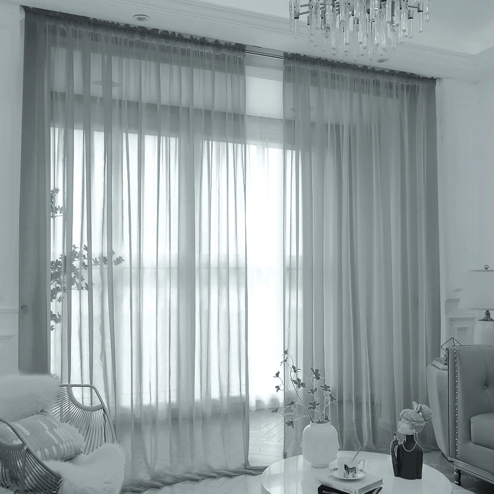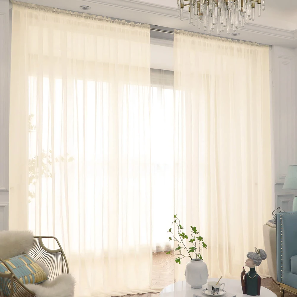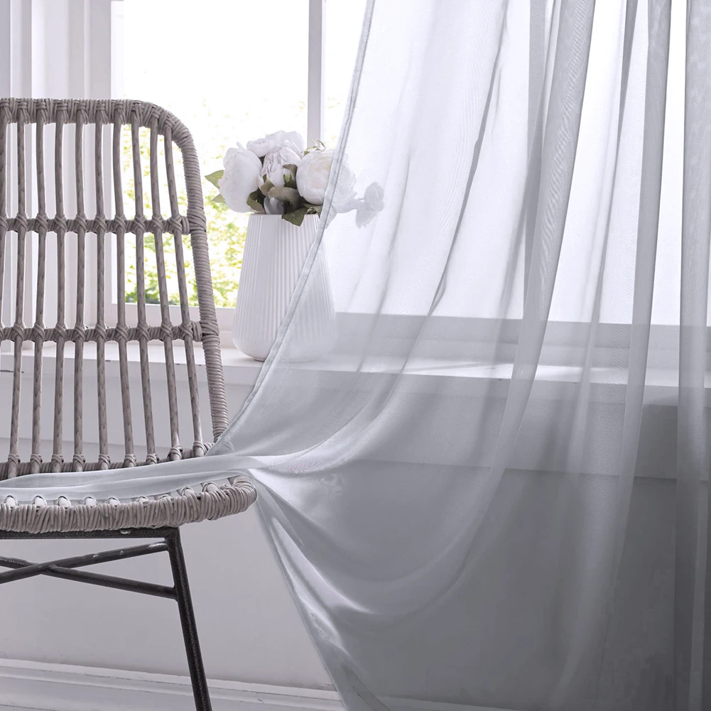 Cortinas de gasa de Organza para sala de estar y dormitorio, tela transparente de tul, color sólido, W132CM