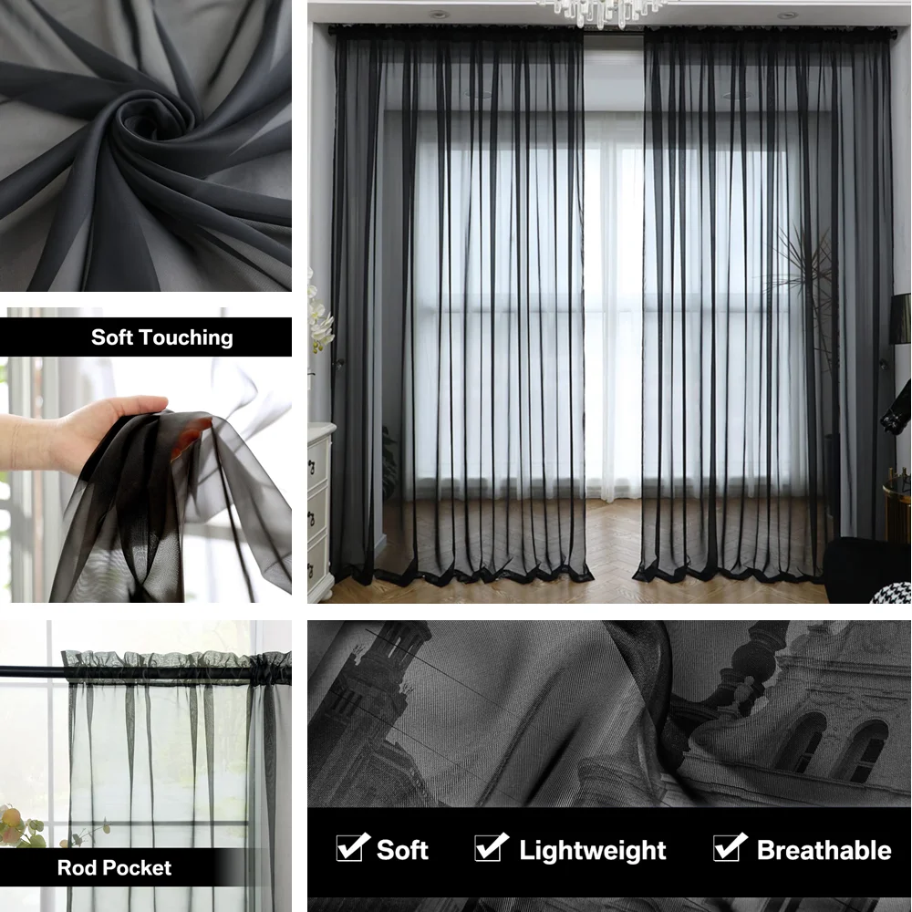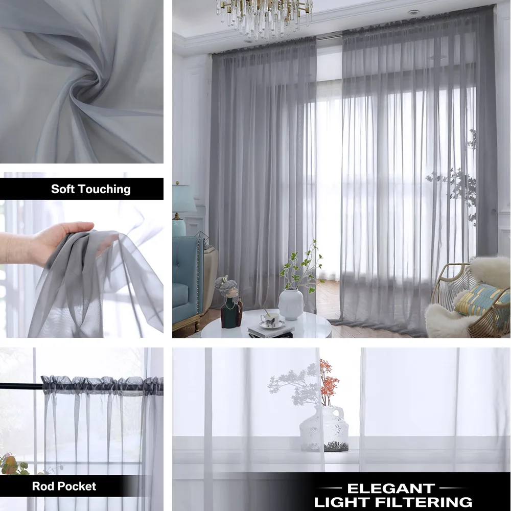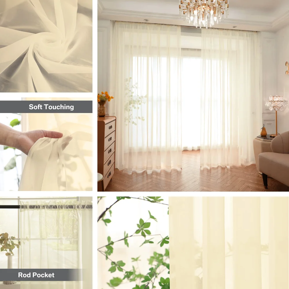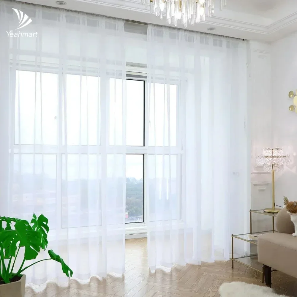 Cortinas de gasa de Organza para sala de estar y dormitorio, tela transparente de tul, color sólido, W132CM