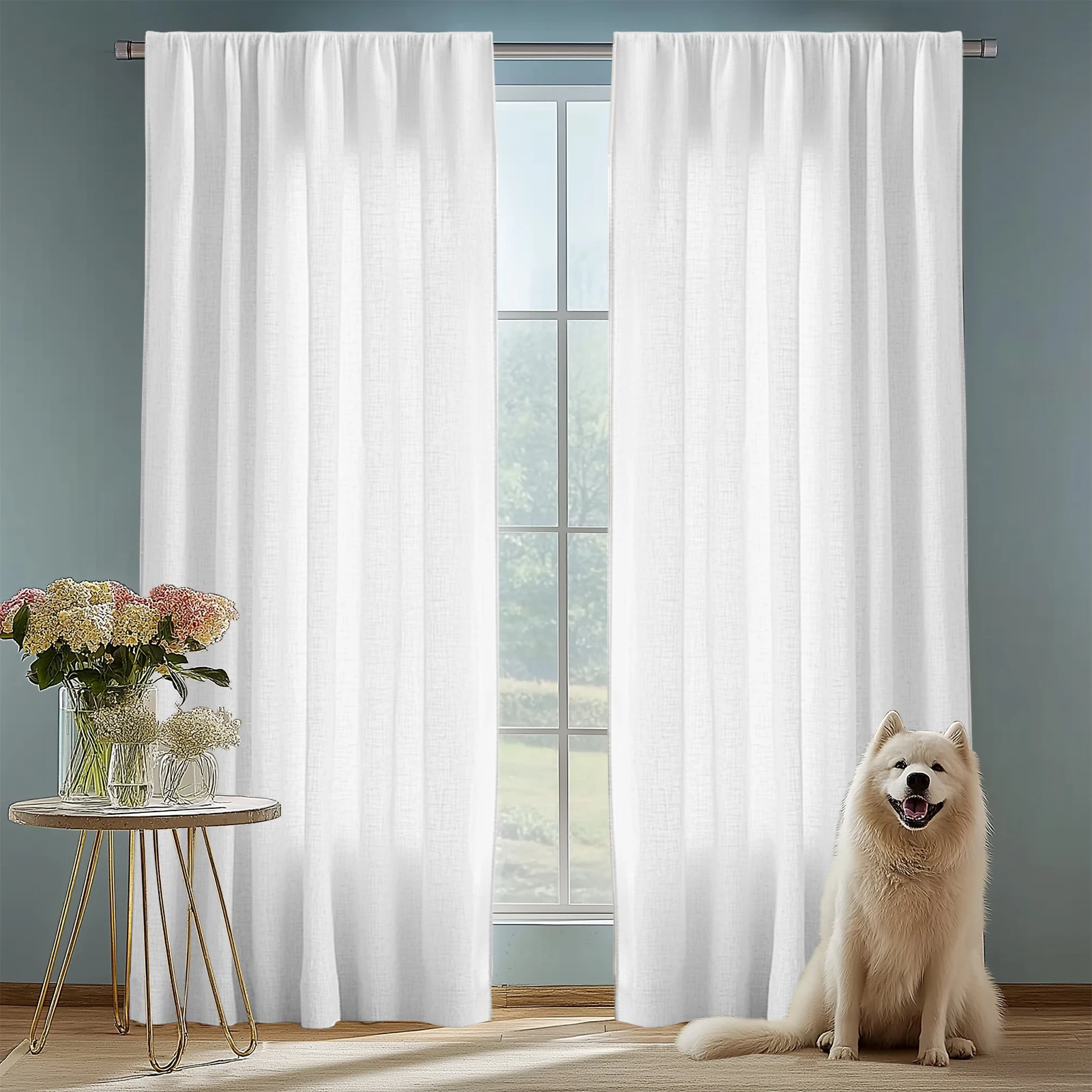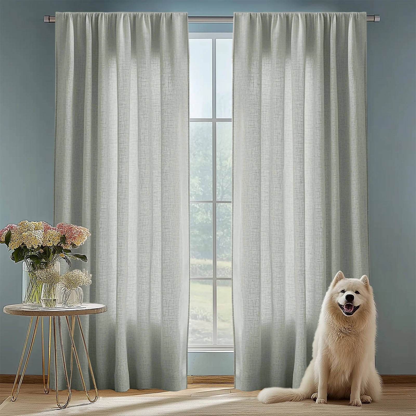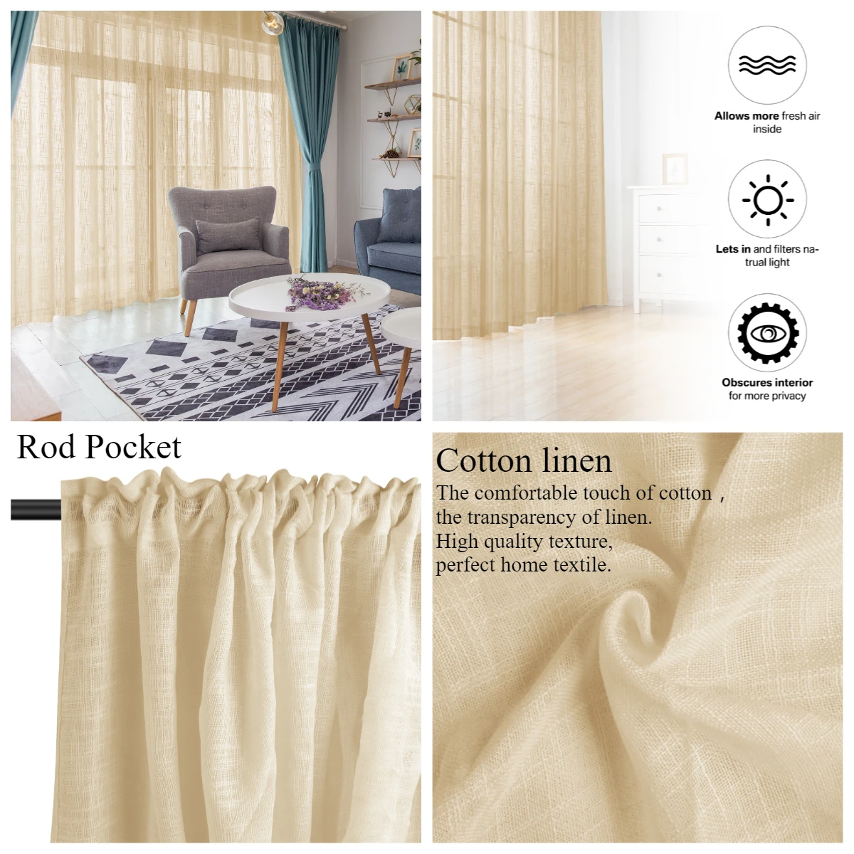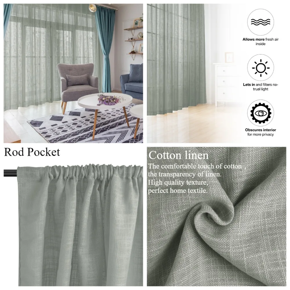 Cortinas transparentes de lino y algodón, cortinas semitransparentes con bolsillo en barra de gasa para dormitorio, sala de estar, cortinas de ventana con filtrado de luz