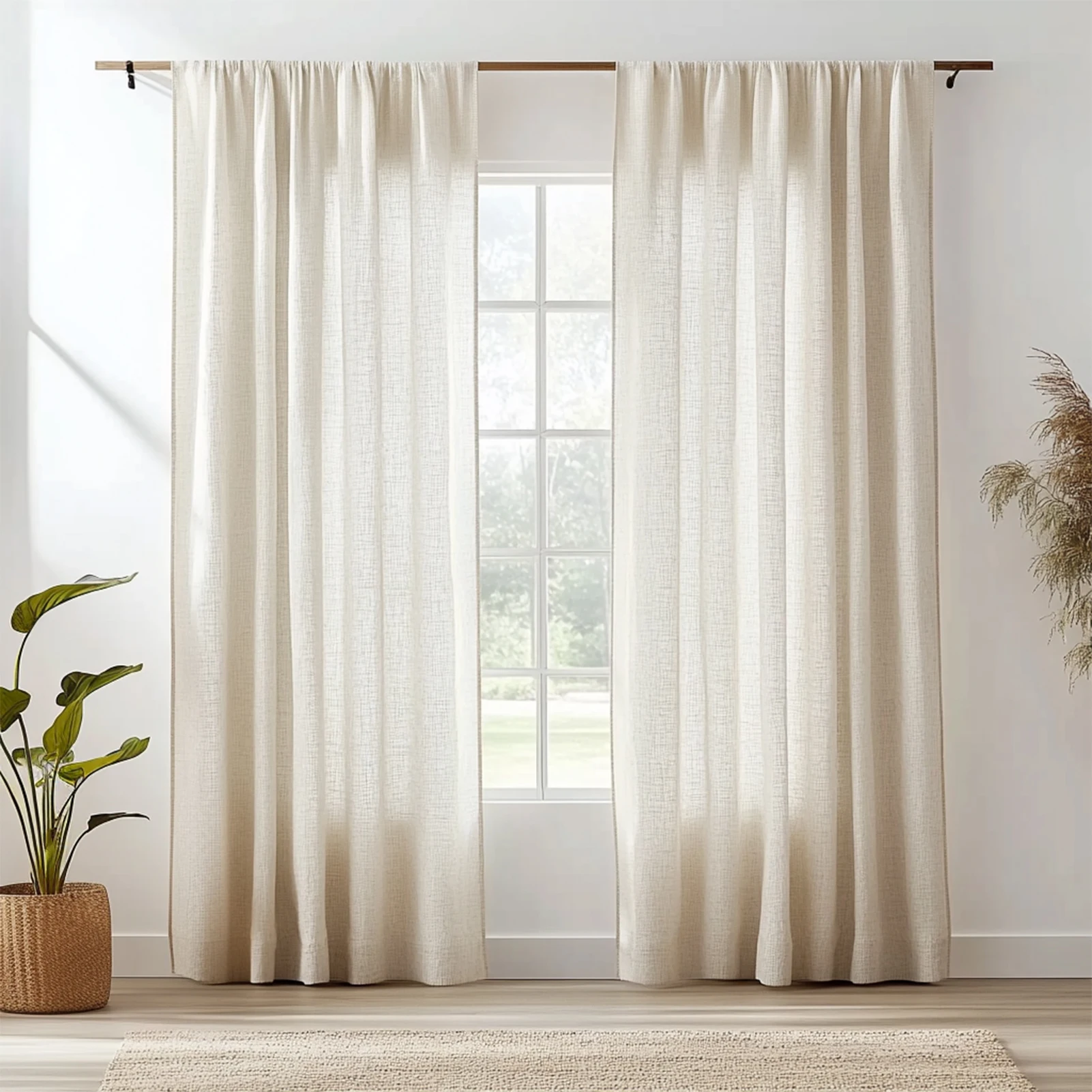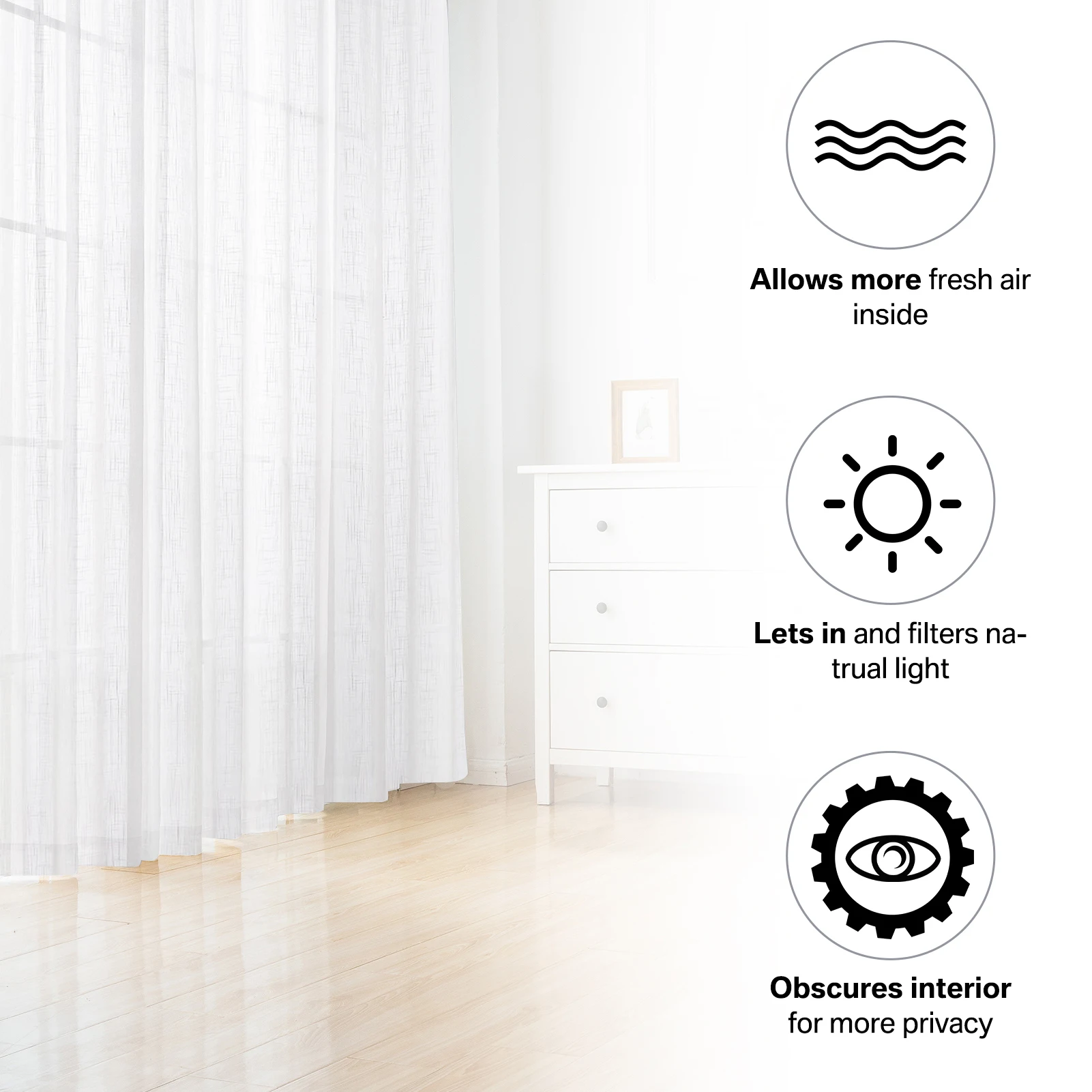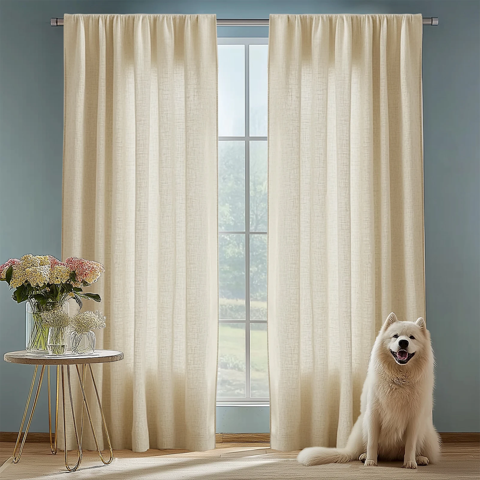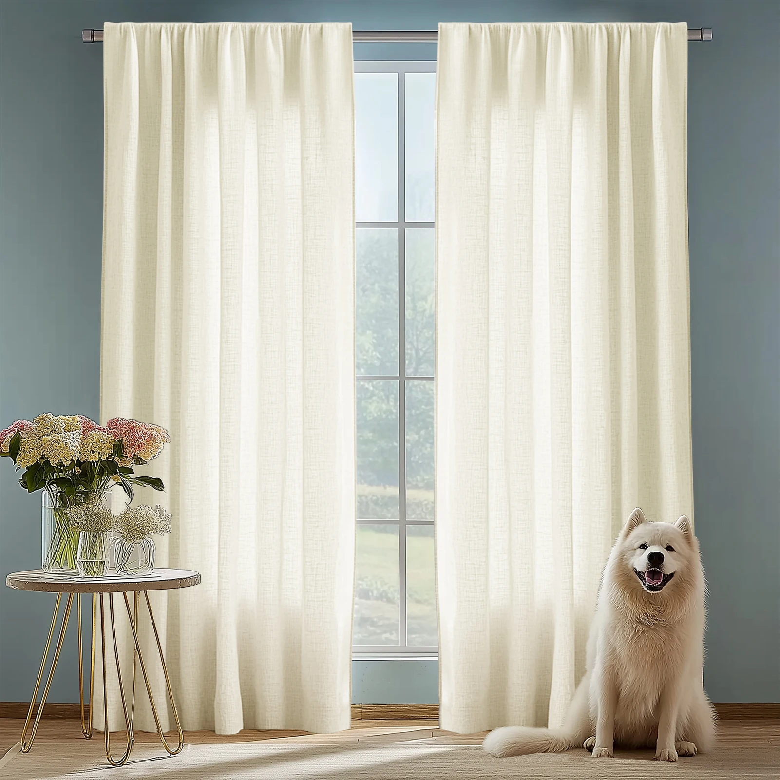 Cortinas transparentes de lino y algodón, cortinas semitransparentes con bolsillo en barra de gasa para dormitorio, sala de estar, cortinas de ventana con filtrado de luz