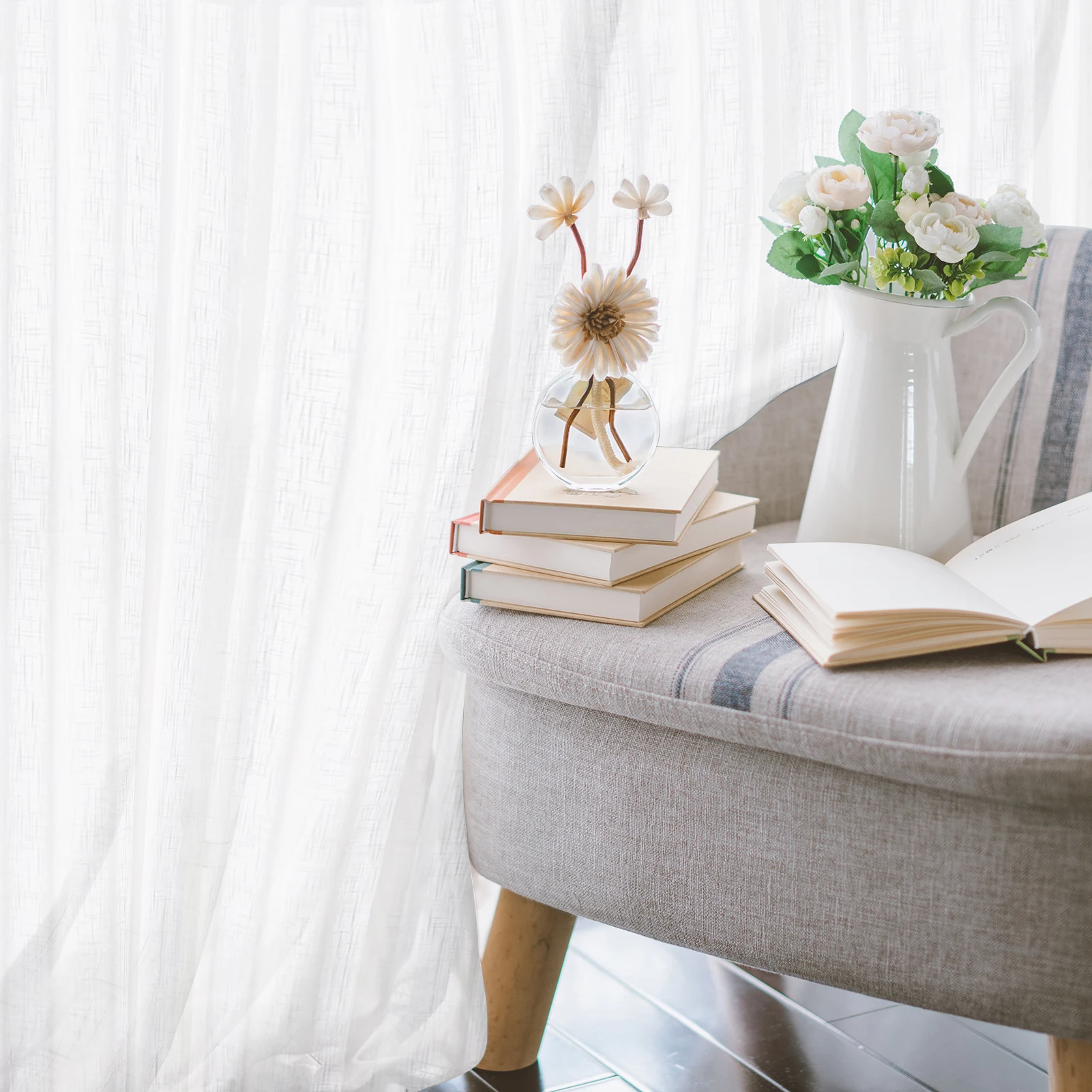 Mano de obra de calidad:Tejido semi transparente texturizado de lino de poliéster duradero importado.Mano de obra exquisita, sin hilos sueltos, cosido recto. Sin arrugas, tamaños consistentes.