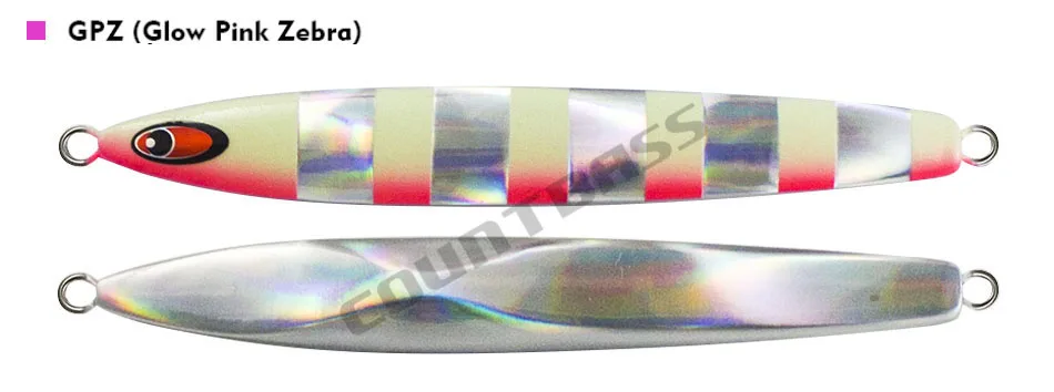Countbass 1 unidad de señuelos de Jigging largos de 125g, color de raya brillante ofrecido, plantilla lenta de agua Saterwater, cebo de plantillas de pesca de Metal