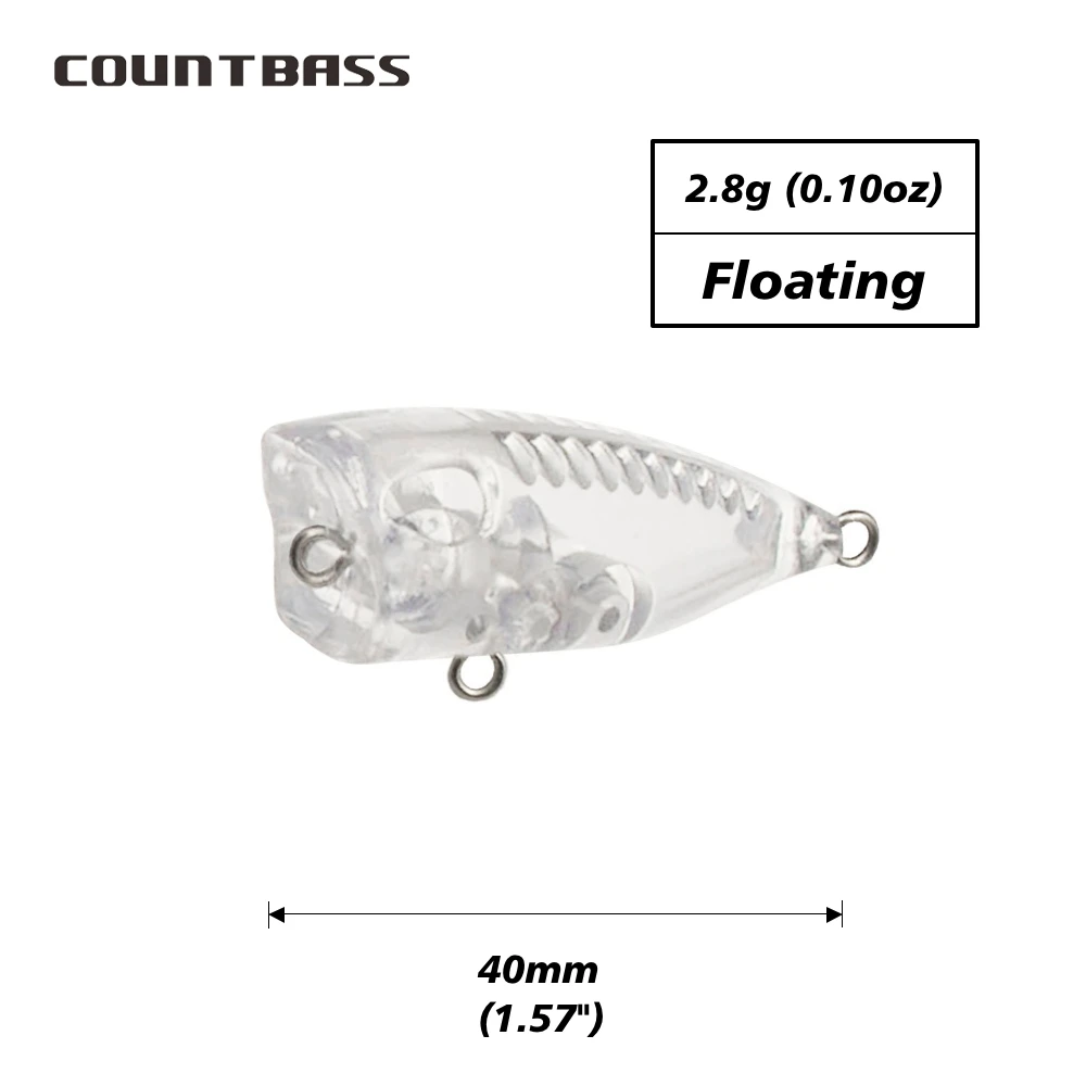 Countbass 10 cuerpos de señuelo en blanco, Topwater flotante 40 mm/1,6 "3 g/0,1 oz, señuelos de pesca sin pintar, Popper, Wobblers