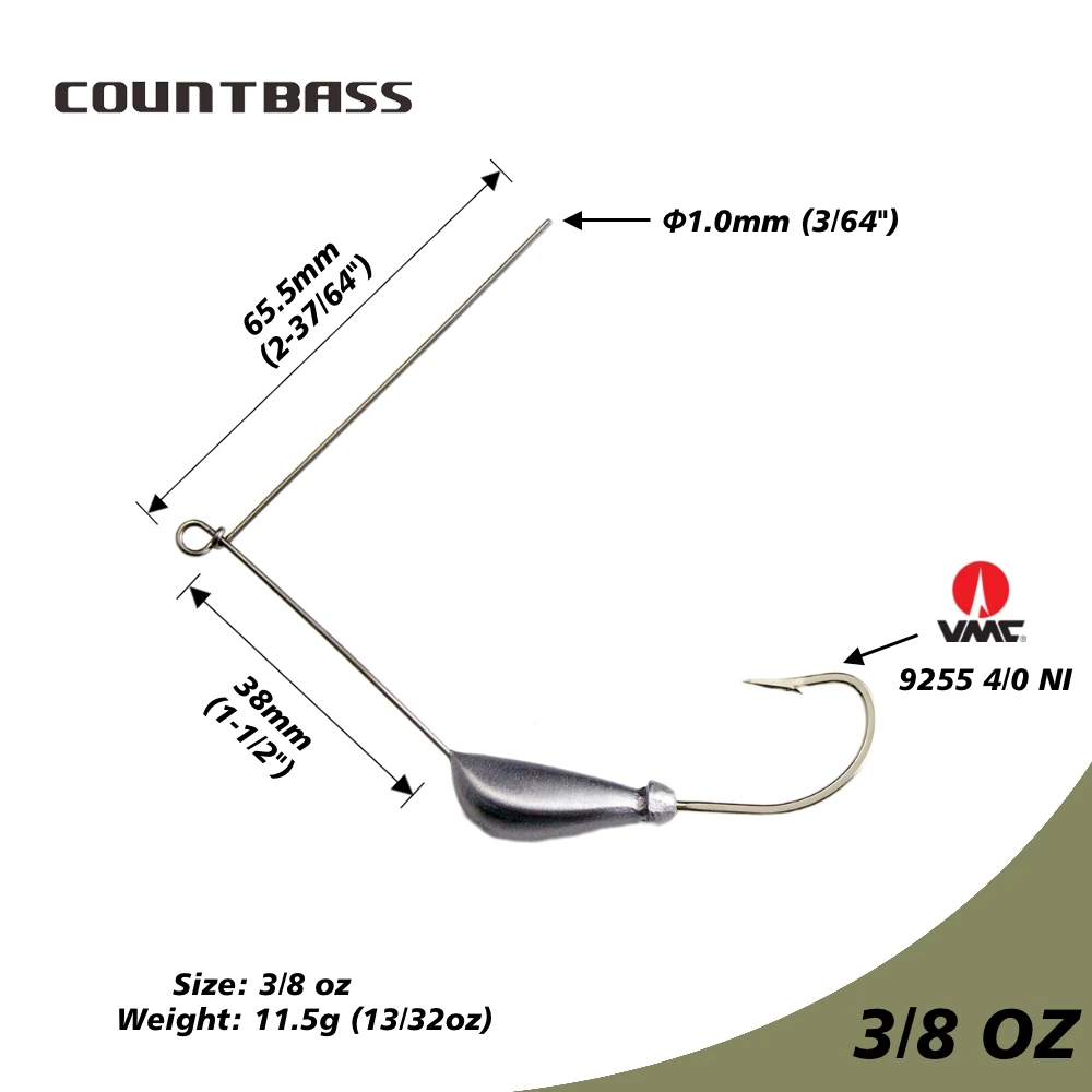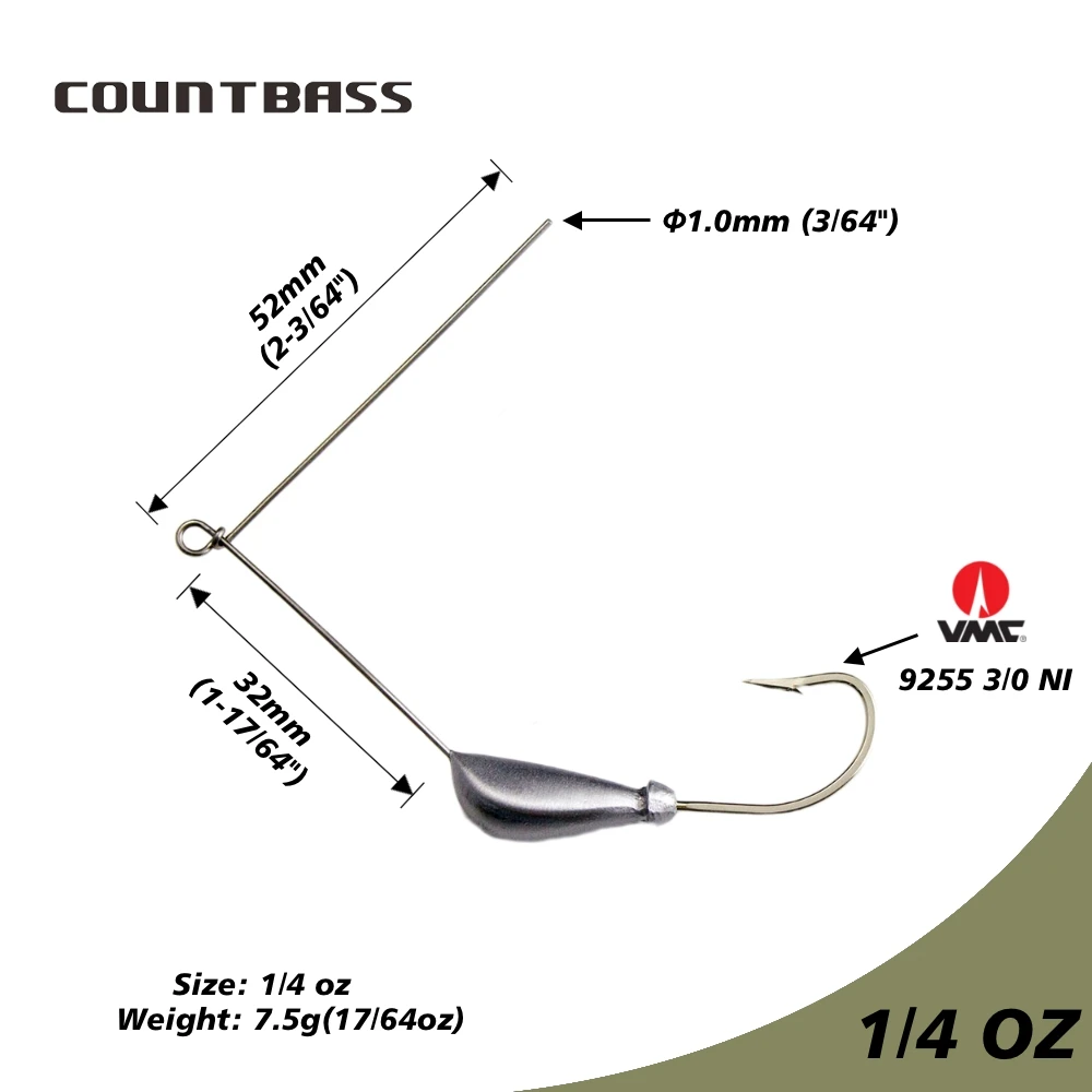 Countbass 10 Uds 1/8oz 1/4oz 3/8oz 1/2oz cebo giratorio sin pintar con anzuelo VMC, cabezales giratorios en blanco, Señuelos de Pesca DIY