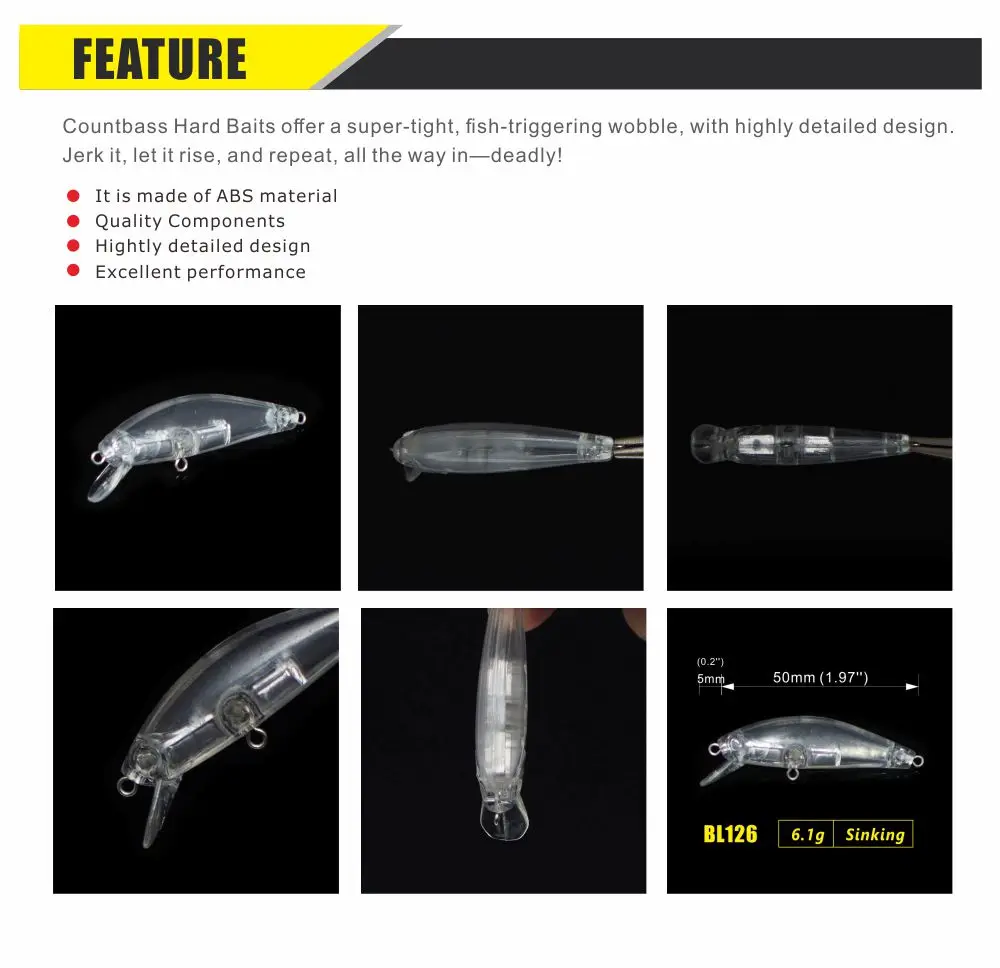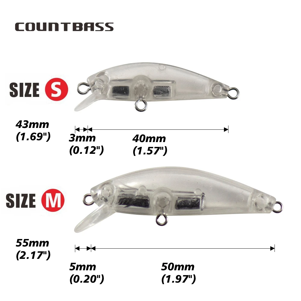 Countbass, 10 Uds., cuerpos de cebo duro en blanco, 40mm/1,6 "2,4g/0,08 oz, 50mm/2" 6g/0,22oz, pececillo que se hunde, Señuelos de pesca sin pintar Wobblers