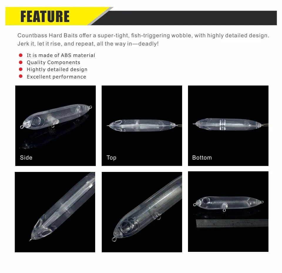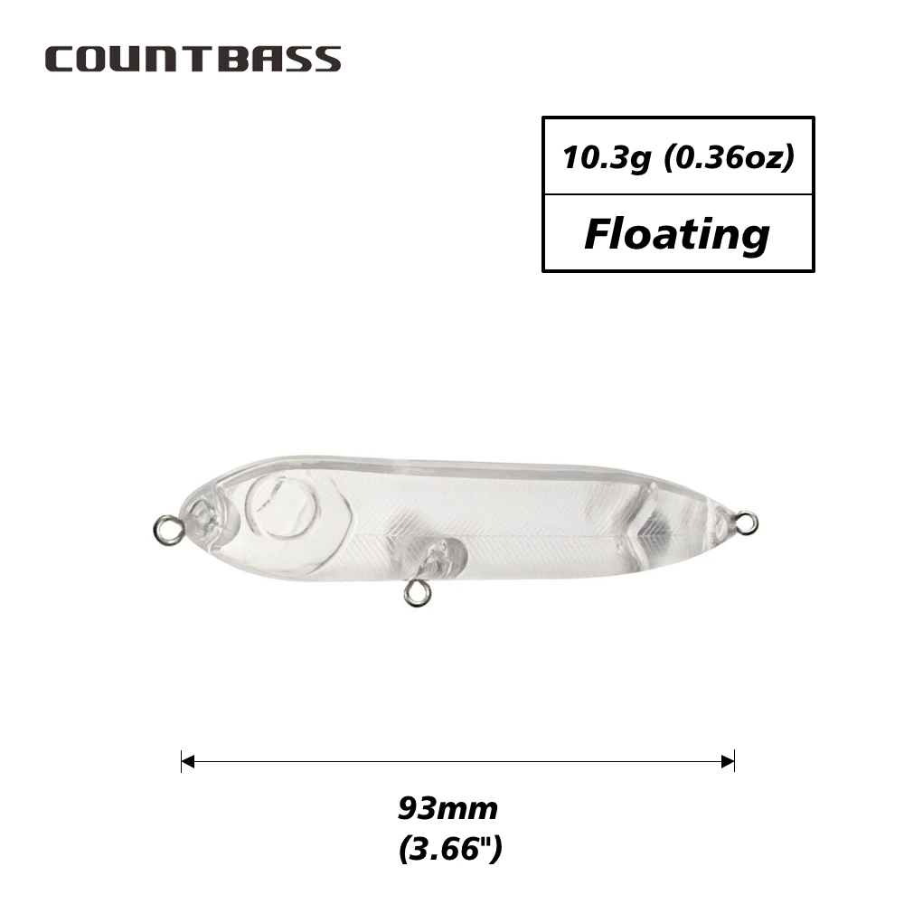 Countbass 10 Uds cuerpos de señuelo en blanco 93mm/3,66 "10,3g/0,36oz flotantes Topwater, Señuelos de pesca sin pintar, Popper, Wobblers