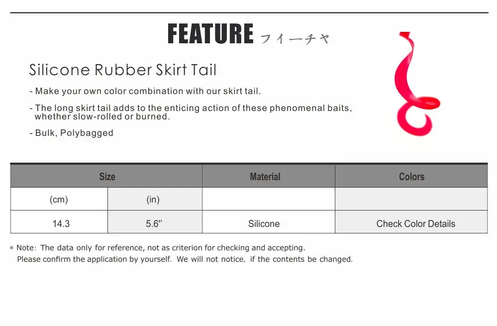 La falda larga de goma rizada aumenta la acción atractiva de estos cebos fenomenales, ya sean laminados lentamente o quemados.Es una buena opción para plantillas madai, plantillas de goma salada, plantillas inchiku y señuelos de pesca de pargo inferior.